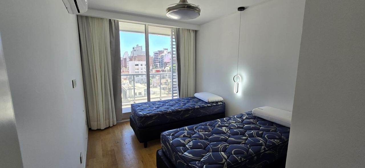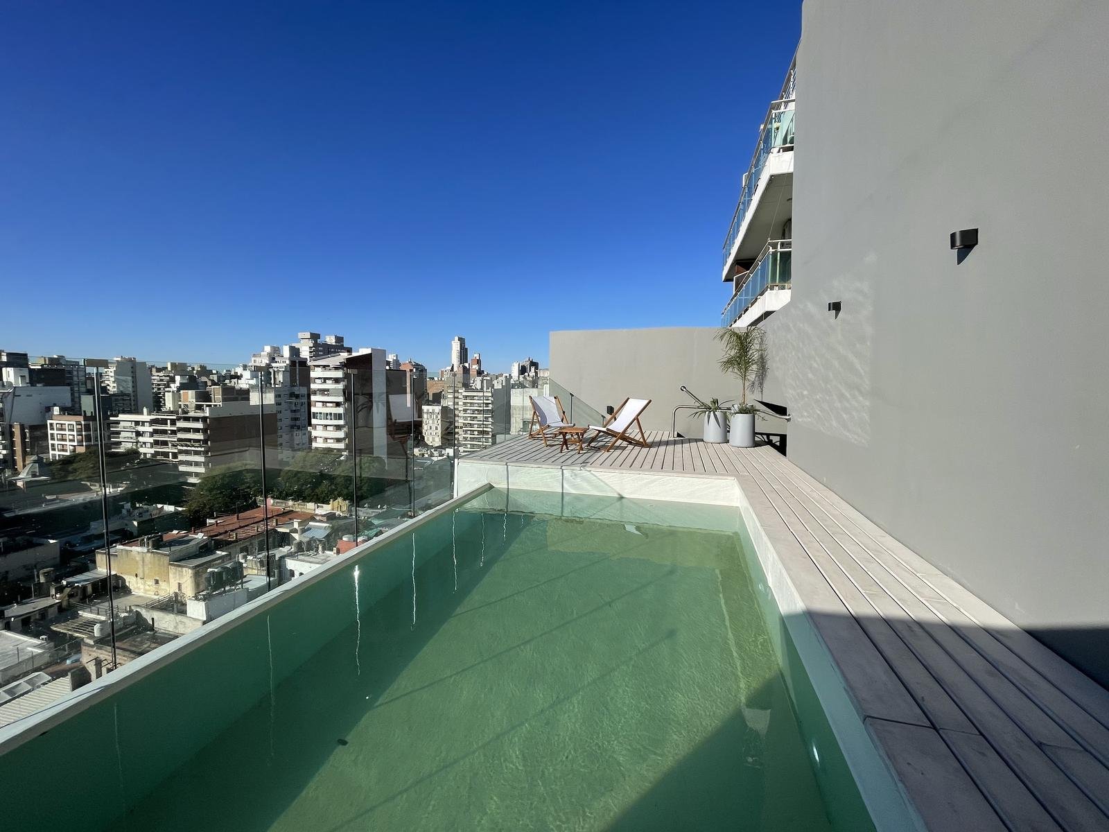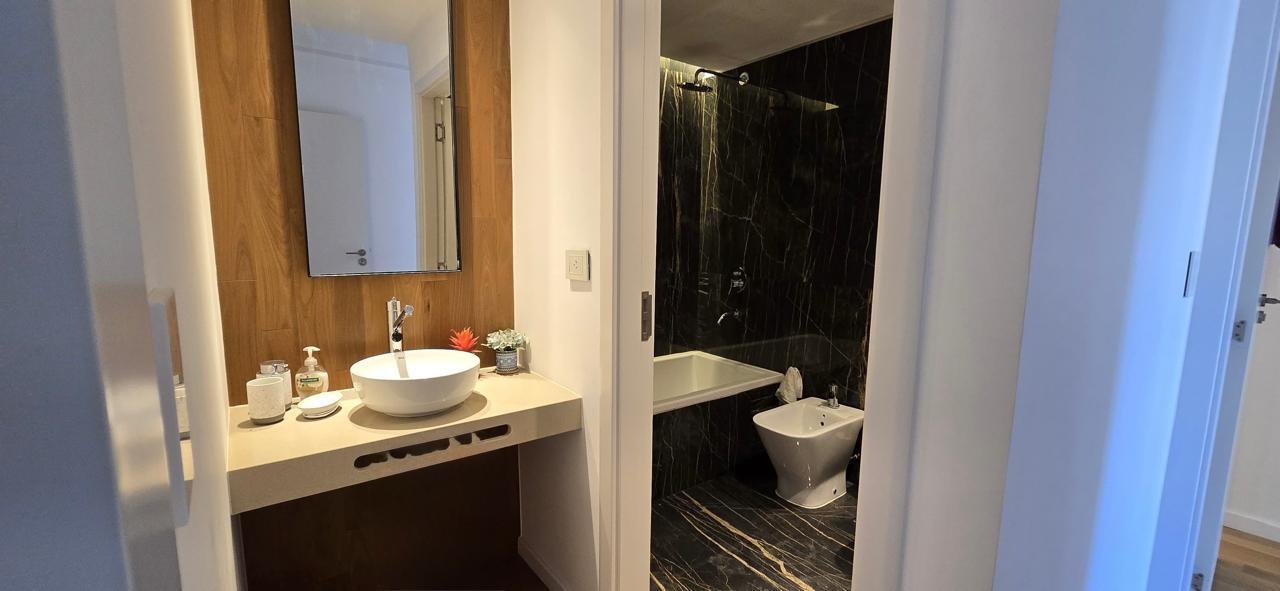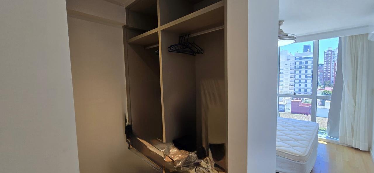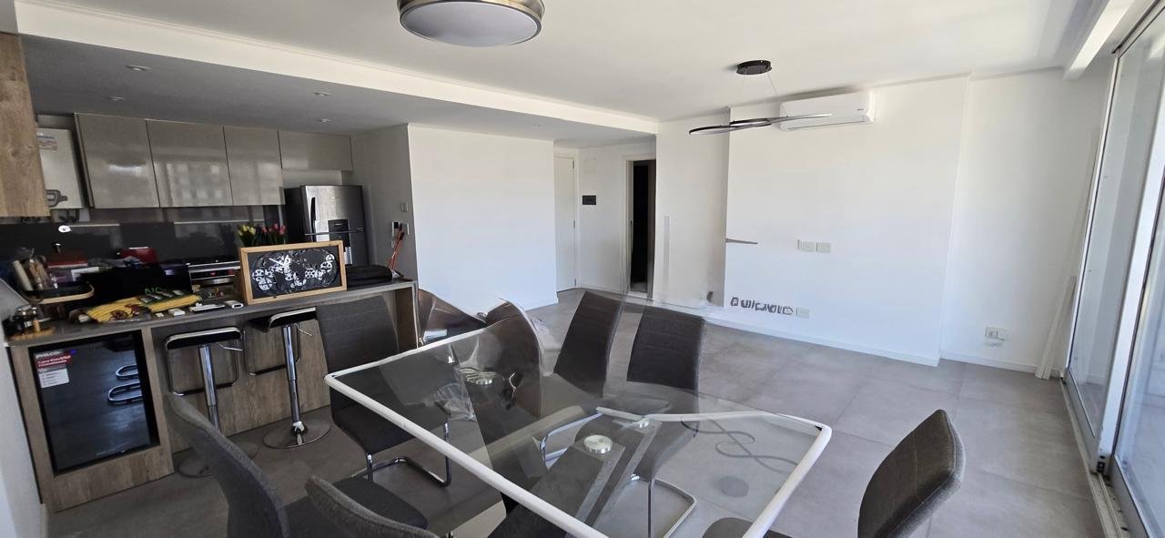 Dos dormitorios. Principal en suite con vestidor. Ingreso por sector social abierto hacia el Norte. Cocina integrada en isla equipada con minibar y mobiliario moderno completo. Instalación para lavavajillas y lavarropas. Barra desayunadora. Sector social de living y comedor con salidas al gran balcón con piel de vidrio corrido al frente y visuales abiertas a la ciudad. Paso a los íntimos con ante baño y baño principal con bañera. Dormitorio con salida hacia el balcón y placares completos. Unidad equipada con mobiliario de diseño personalizado.