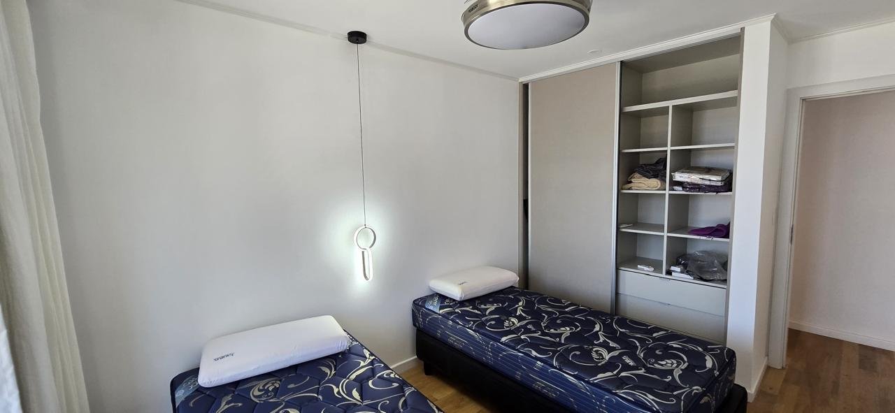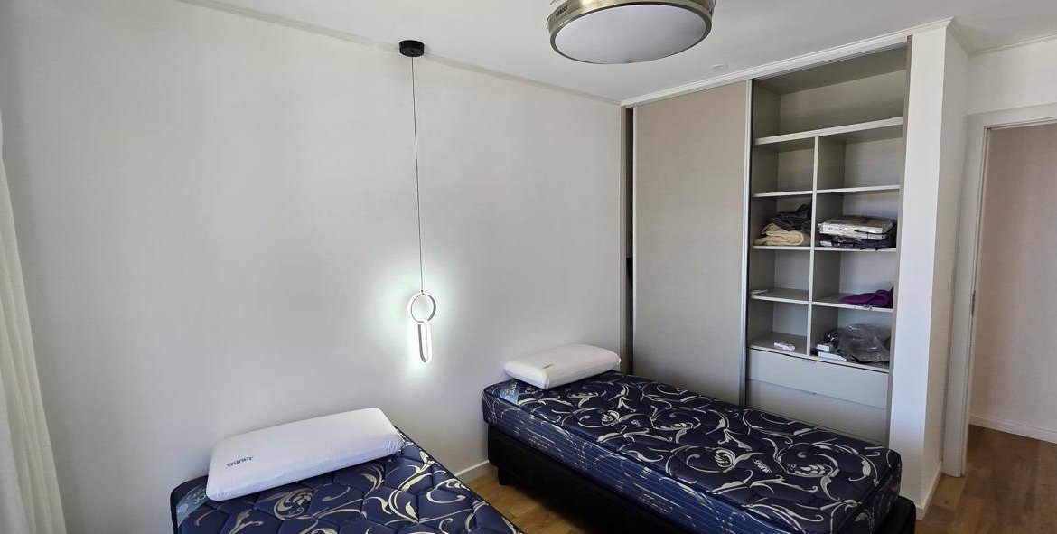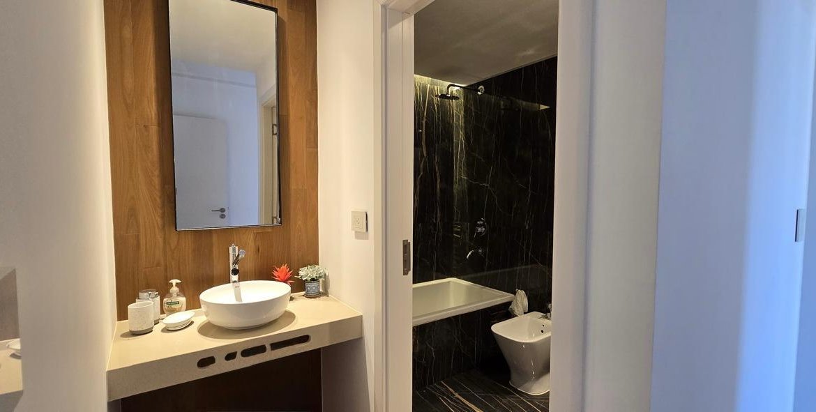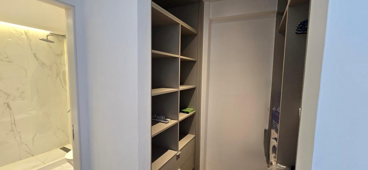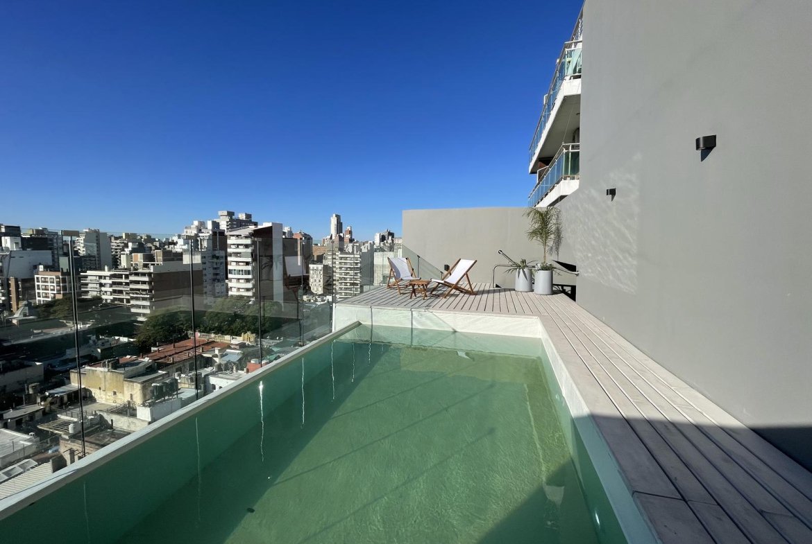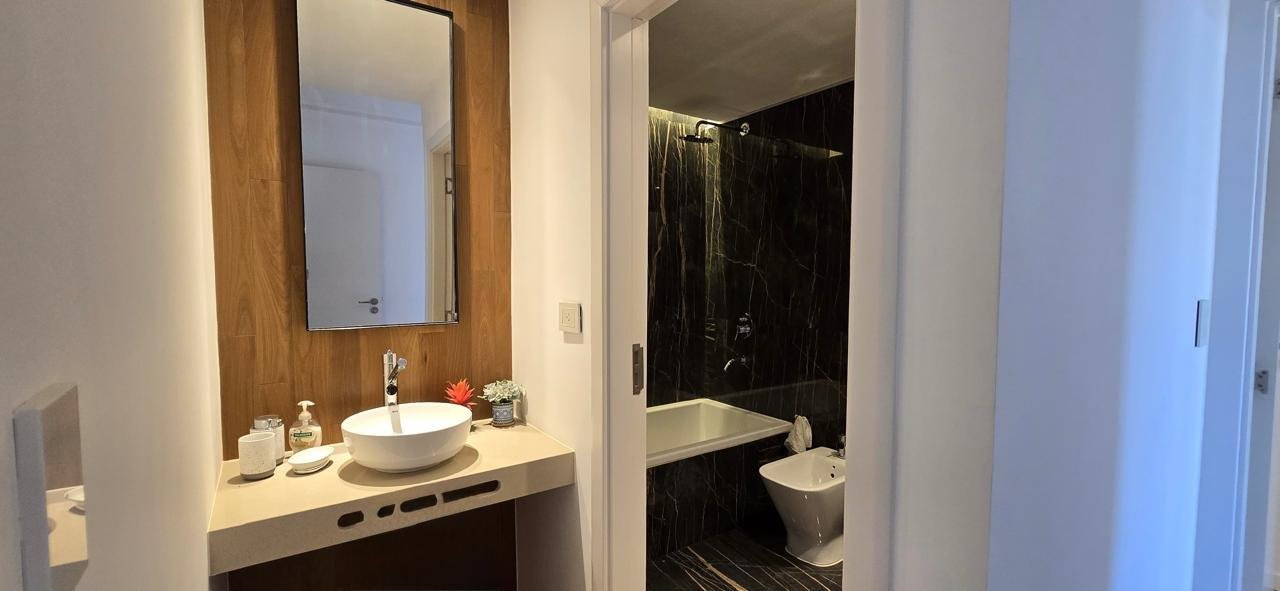 Dos dormitorios. Principal en suite con vestidor. Ingreso por sector social abierto hacia el Norte. Cocina integrada en isla equipada con minibar y mobiliario moderno completo. Instalación para lavavajillas y lavarropas. Barra desayunadora. Sector social de living y comedor con salidas al gran balcón con piel de vidrio corrido al frente y visuales abiertas a la ciudad. Paso a los íntimos con ante baño y baño principal con bañera. Dormitorio con salida hacia el balcón y placares completos. Unidad equipada con mobiliario de diseño personalizado.