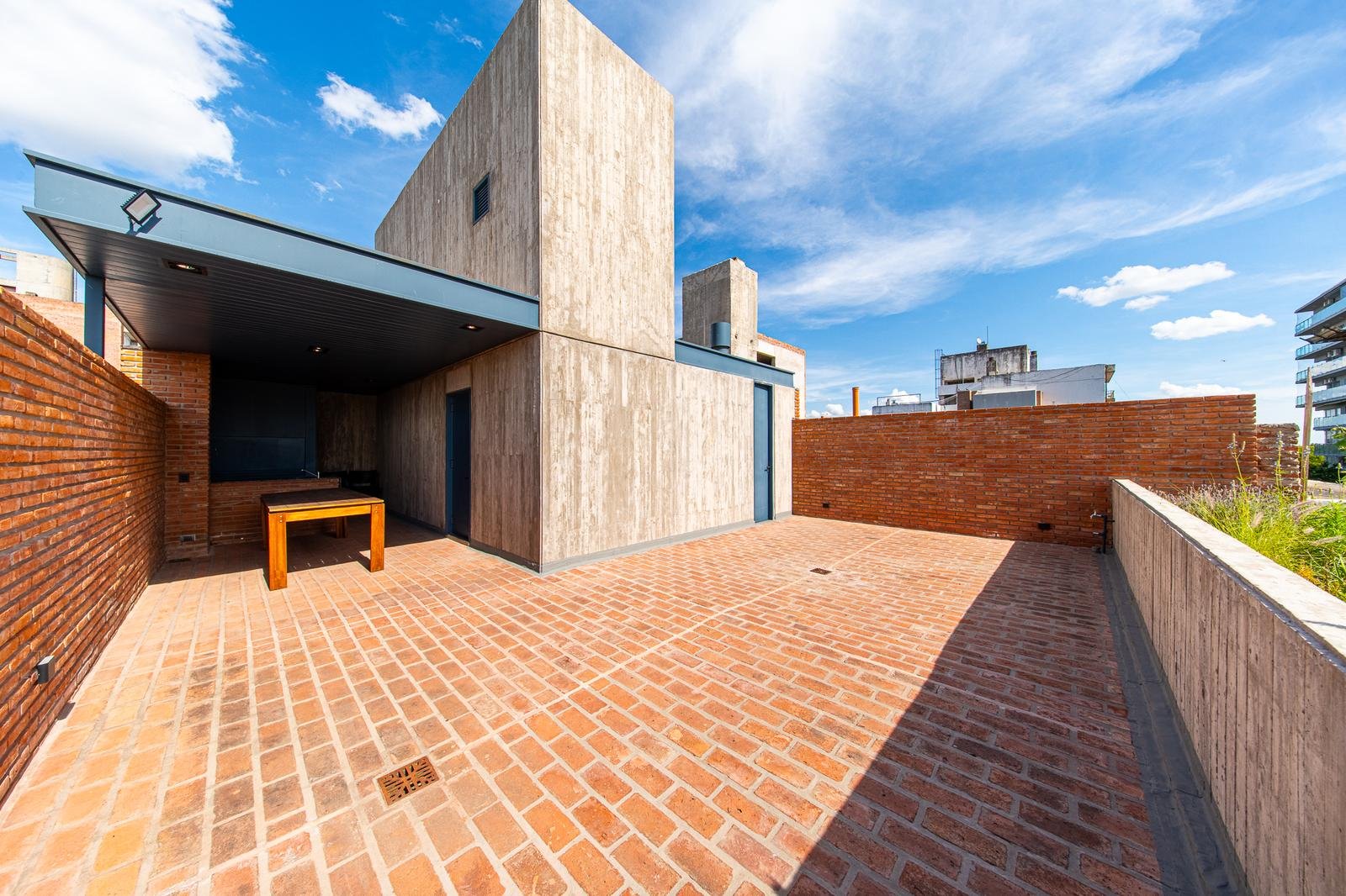 Cuenta con un amplio Hall de Ingreso al edificio con canteros con vegetación incorporada, y con el acceso vehicular a 2 pisos de cocheras. Los usos comunes se encuentran en la azotea del edificio equipado con parrillero semi cubierto, solarium y pileta.