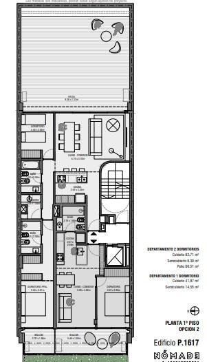 Cuenta con un amplio Hall de Ingreso al edificio con canteros con vegetación incorporada, y con el acceso vehicular a 2 pisos de cocheras. Los usos comunes se encuentran en la azotea del edificio equipado con parrillero semi cubierto, solarium y pileta.