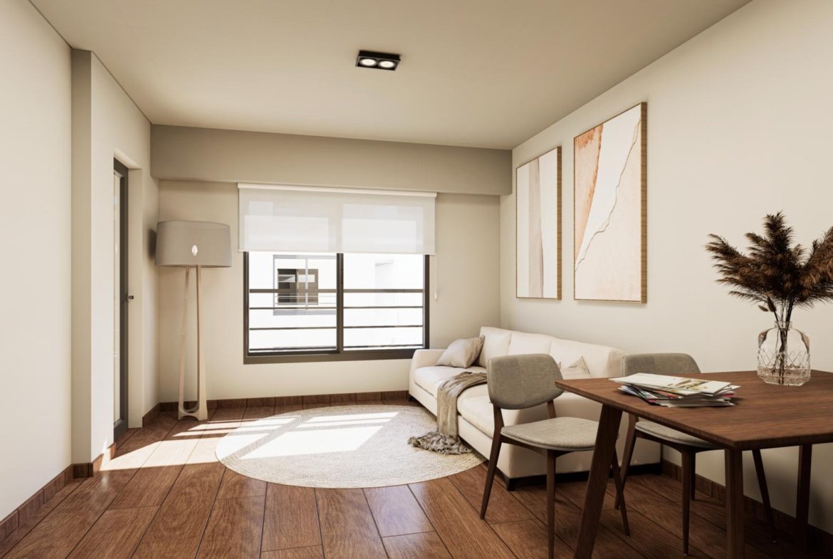 El proyecto contará con departamentos de un dormitorio al frente y al contrafrente, con ambientes funcionales, luminosos y detalles de calidad en cada terminación.