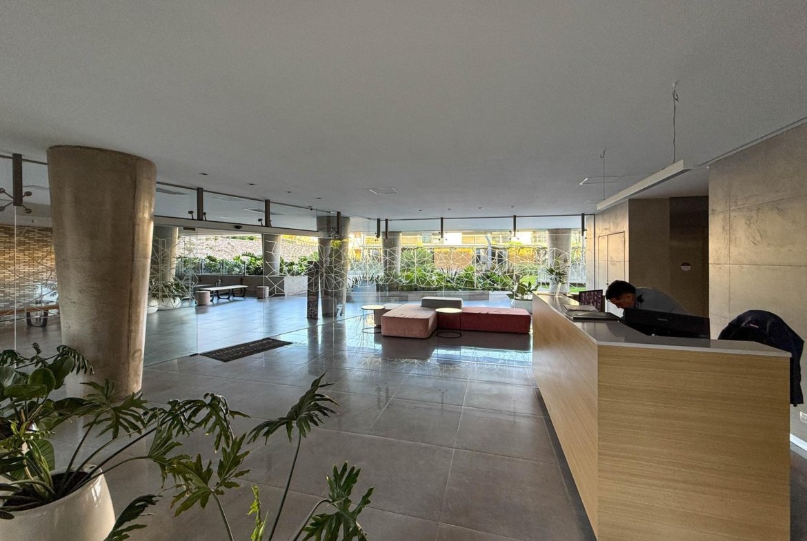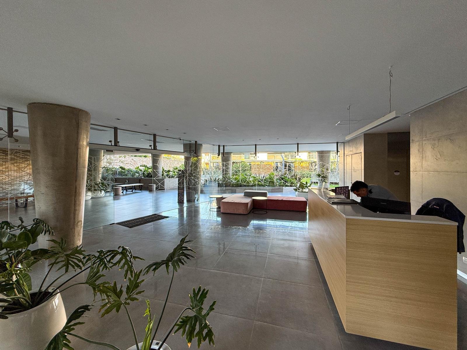 Departamento de 1 dormitorio a estrenar con balcón al contrafrente, la cual le da una vista relajada y armoniosa hacia el parque verde exclusivo del condominio. La unidad dispone de cocina semi integrada, separada con una cómoda barra desayunadora, living comedor con salida al balcón lo cual lo hace muy luminoso y ventilado.
