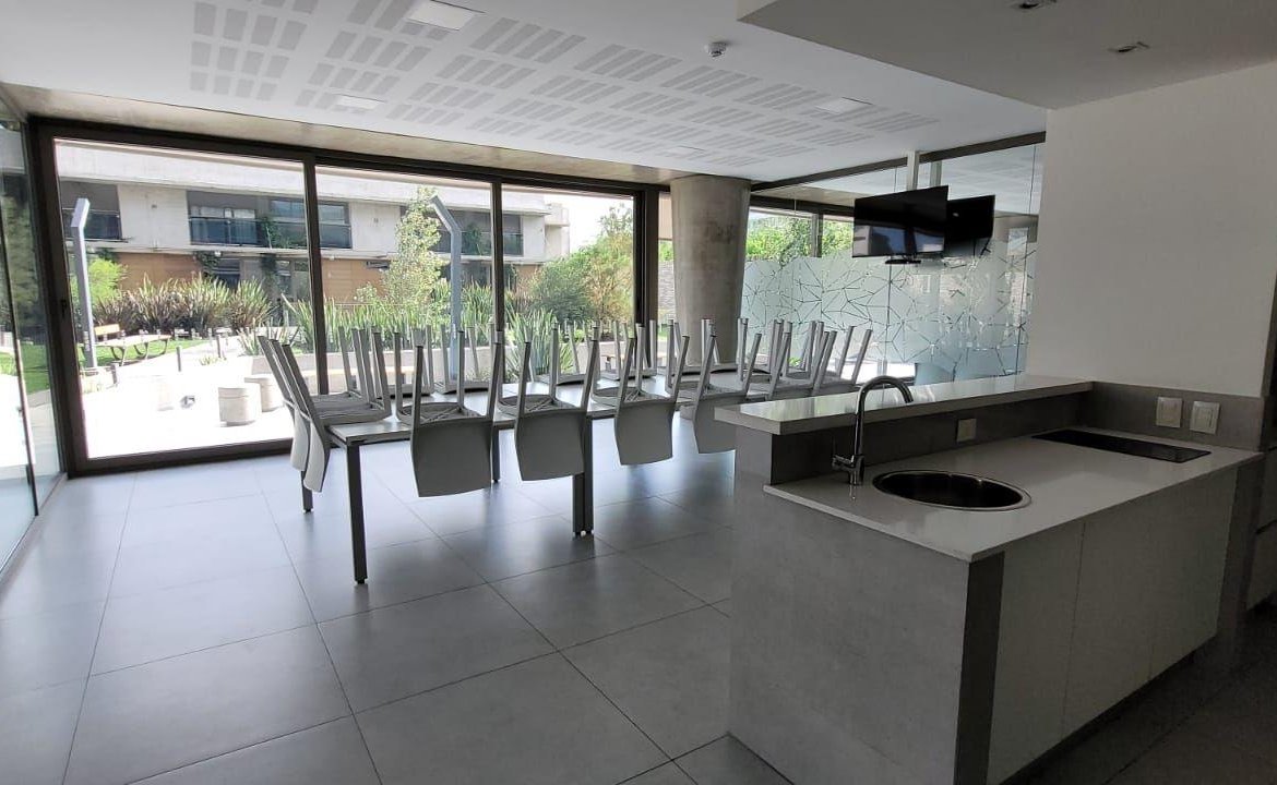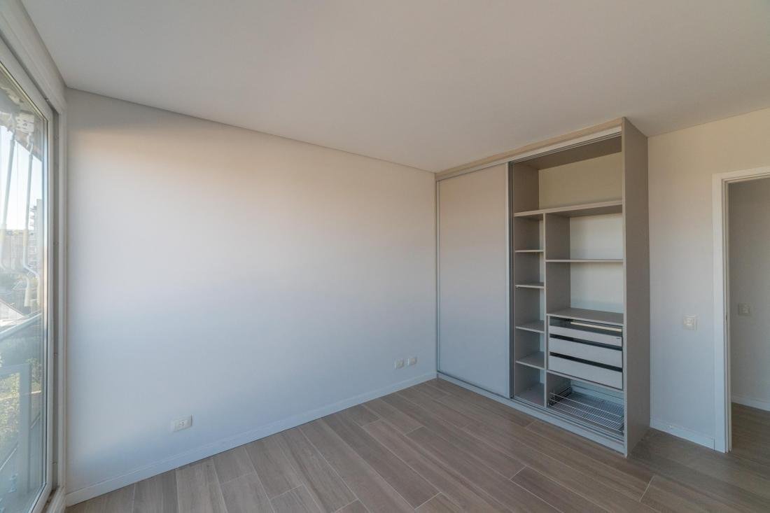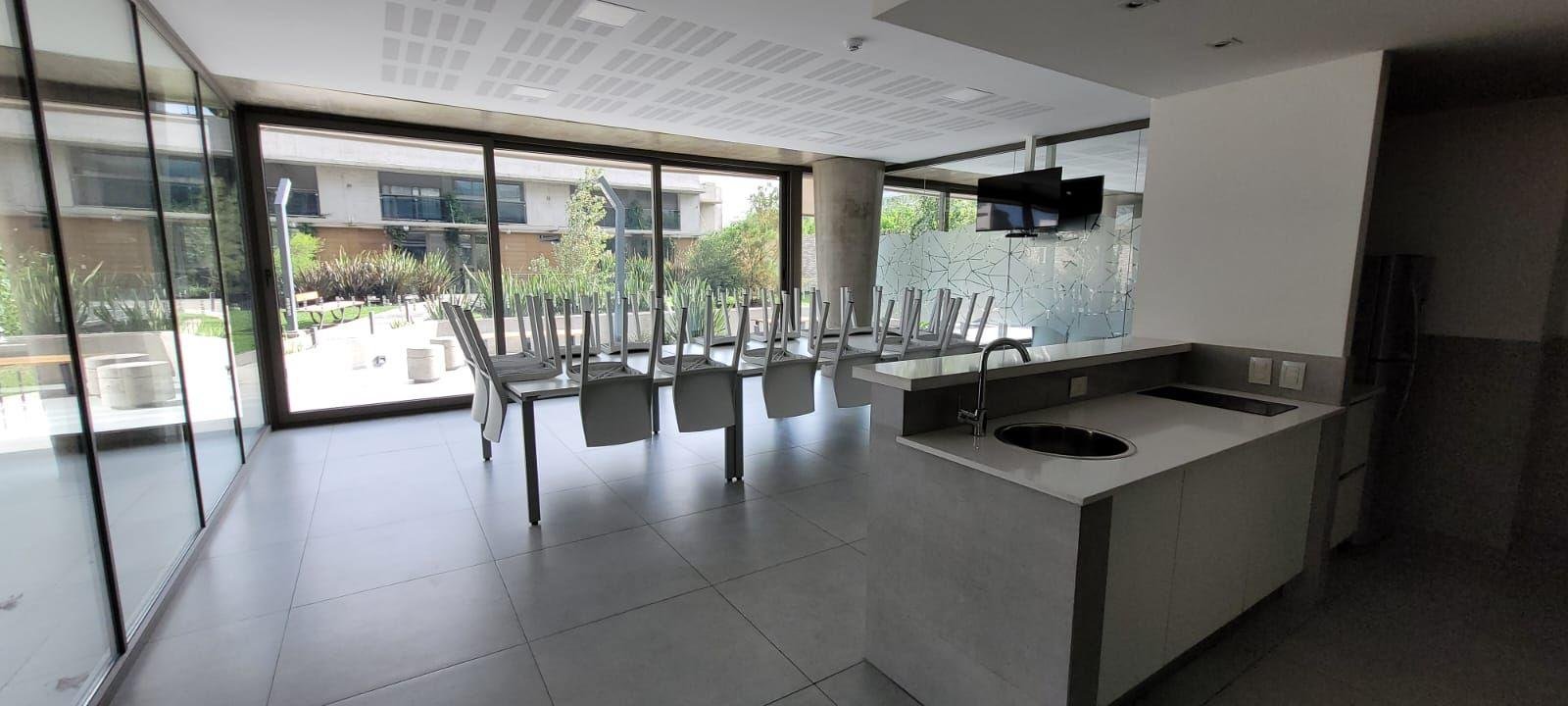 Departamento de 1 dormitorio a estrenar con balcón al contrafrente, la cual le da una vista relajada y armoniosa hacia el parque verde exclusivo del condominio. La unidad dispone de cocina semi integrada, separada con una cómoda barra desayunadora, living comedor con salida al balcón lo cual lo hace muy luminoso y ventilado.