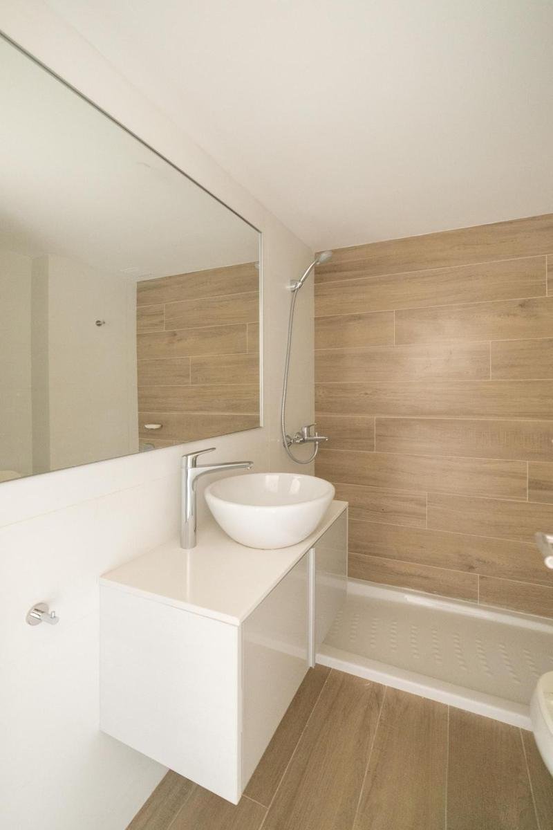 En cocina, mobiliarios completos con alacenas y bajo mesadas con buen espacio de guardado, mesada en silestone blanco, bacha de acero inoxidable de primera línea y griferia monocomando. A su vez, dispone de horno y anafe eléctricos diferenciados, espacio técnico para heladera. En baños, revestimiento en paredes, loza sanitaria y griferías de primeras marcas, duchadores, vanitory, espejo y accesorios colocados.