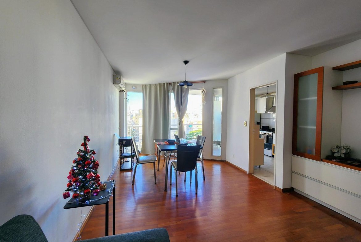 Departamento semipiso ubicado en el piso 9. El mismo dispone de un amplio living comedor con salida hacia el balcón de la propiedad lo cuál le brinda una gran iluminación y ventilación natural. Contiguo a este se encuentra una cómoda cocina independiente con ventilación natural y espacio para lavadero sectorizado. Íntimo que comunica a uno de los baños del departamento y a los dos dormitorios.