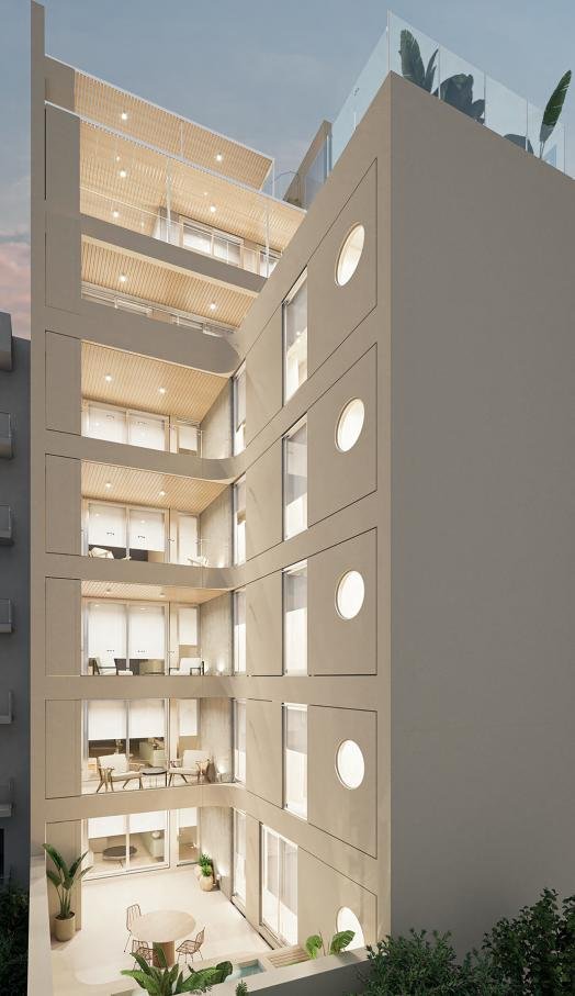 El desarrollo pensado para uso familiar constará de un total de 15 unidades de 2 y 3 dormitorios, distribuidas en 8 pisos, un subsuelo con 5 espacios de cochera, bicicleteros y luagares de baulera, Planta Baja con un local comercial a la calle, y 5 espacios más de cochera, y una planta de Terraza la cual dispondrá de sector de y parrilleros, piscina y zona de solarium. El edificio se destacará por presentar un diseño arquitectónico innovador, combinando el minimalismo y el confort con detalles de calidad tanto en los departamentos como en los espacios comunes. En cuanto a las caracterísitcas y sus detalles constructivos se puede mencionar: