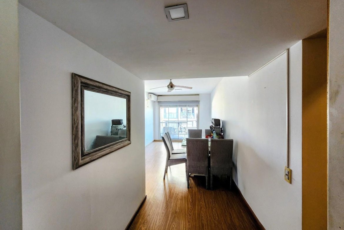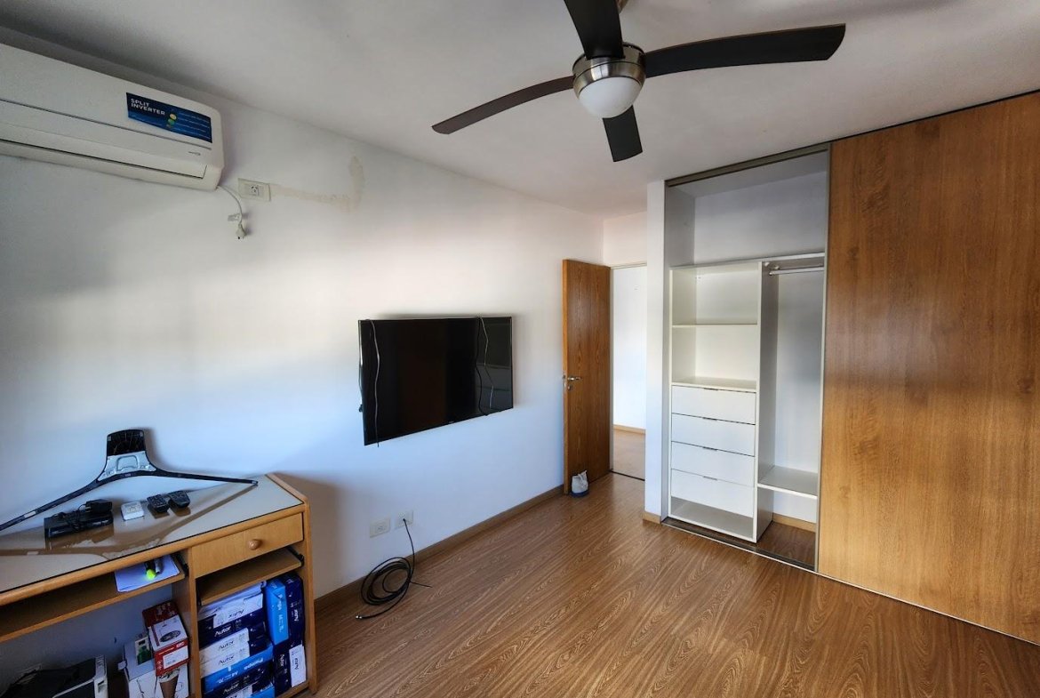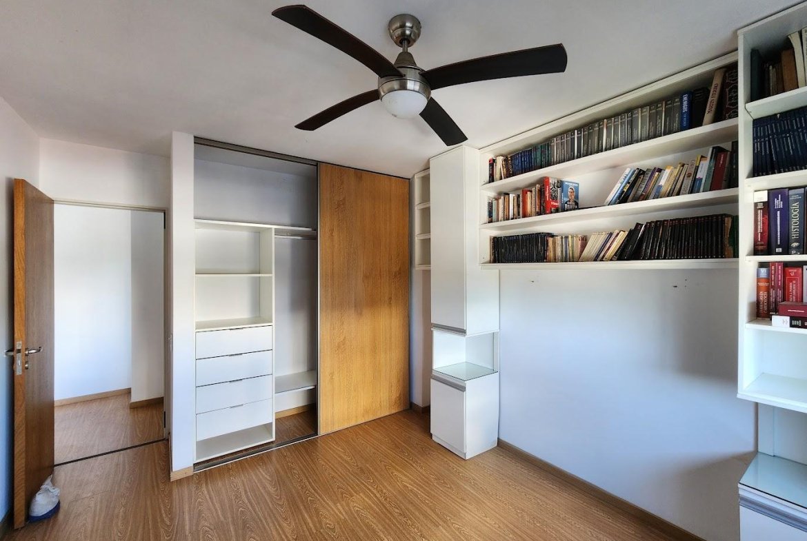Living comedor con pisos flotantes y con salida hacia el balcón del inmueble. Cómo dormitorio con placares con interiores, y baño completo con bañera.