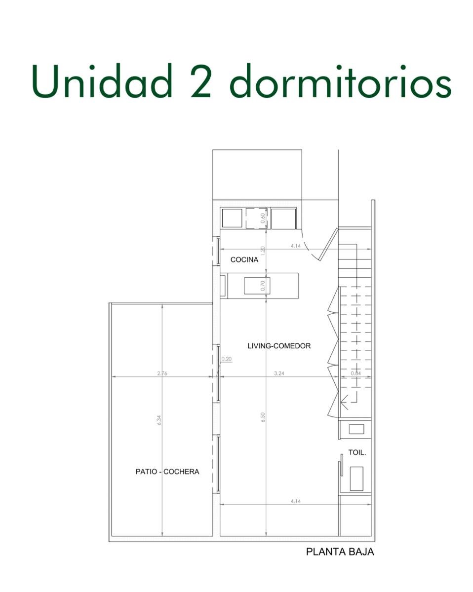 Depto tipo duplex de 102 m2 de superficie, se accede por ingreso principal, dispone de cochera que hace las veces de patio, ingreso a living comedor con cocina integrada, la misma se entregara con mobiliario completo de bajo mesada y alacenas, mesada con bacha en acero inoxidable, horno y anafe. En el bajo escalera encontramos un baño de recepcion, accedemos por escalera la planta alta donde encontramos los intimos habitacion principal, un baño completo y seguida la habitacion secundaria.