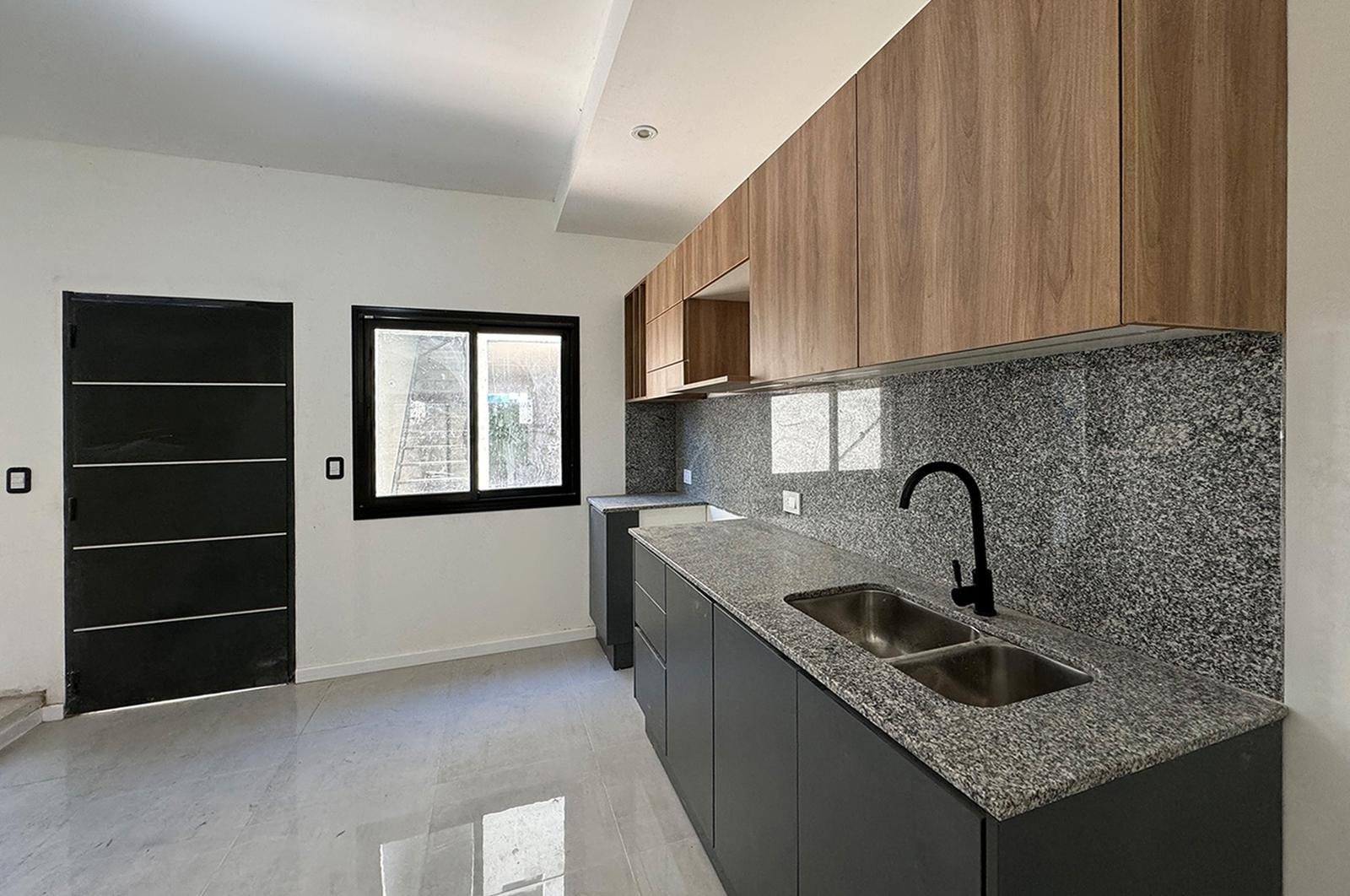 PLANTA BAJA: al ingresar daremos con cocina/comedor, avanzando por pasador se encontrara el lavadero oculto y el baño de servicio, seguido de estos estará la zona de estar con un amplio ventanal dirigido al patio con césped natural.