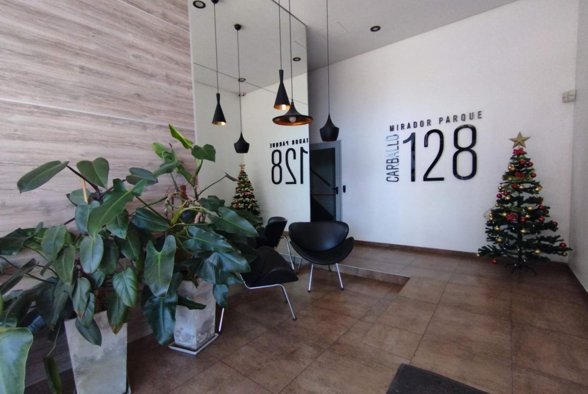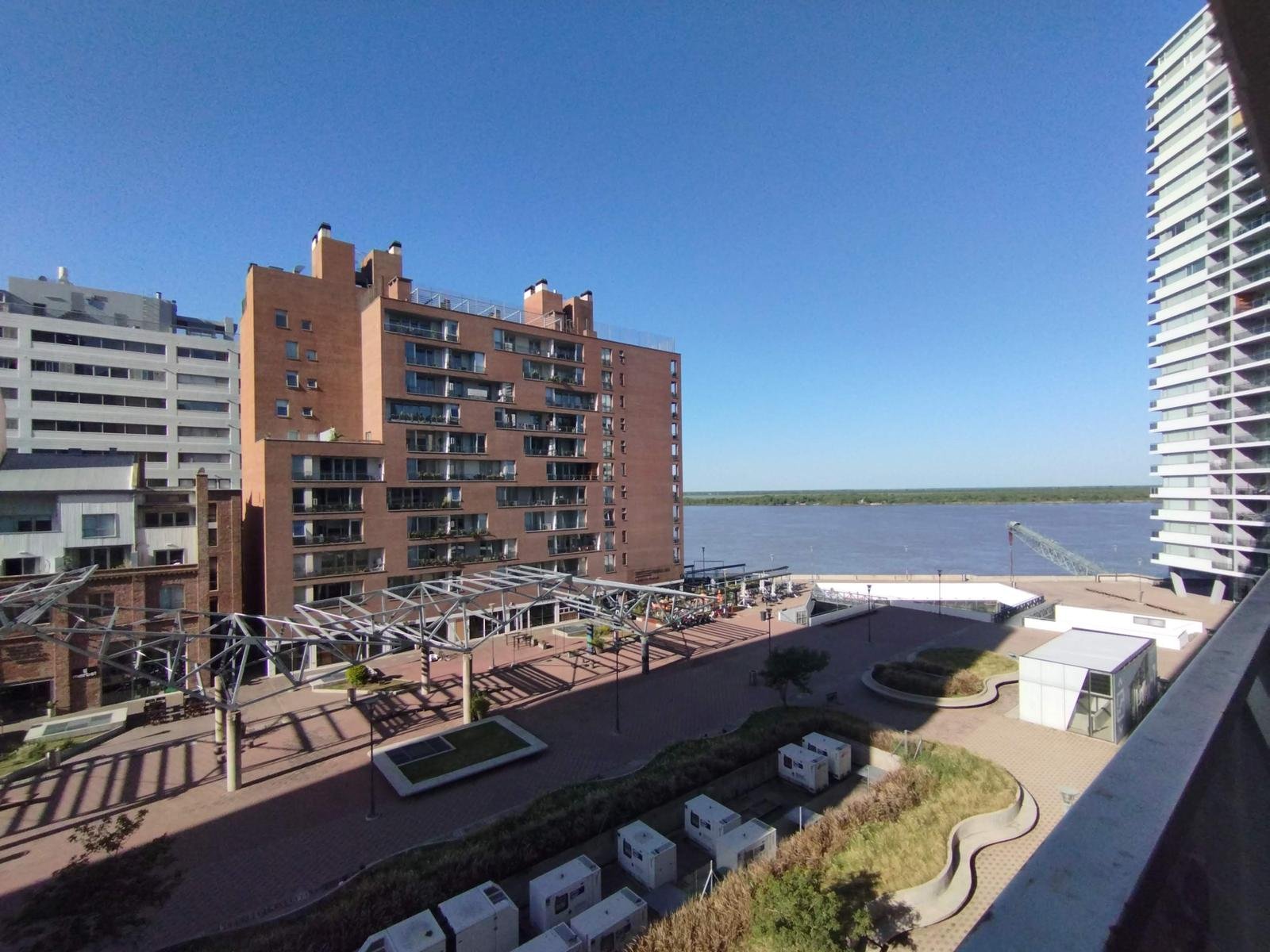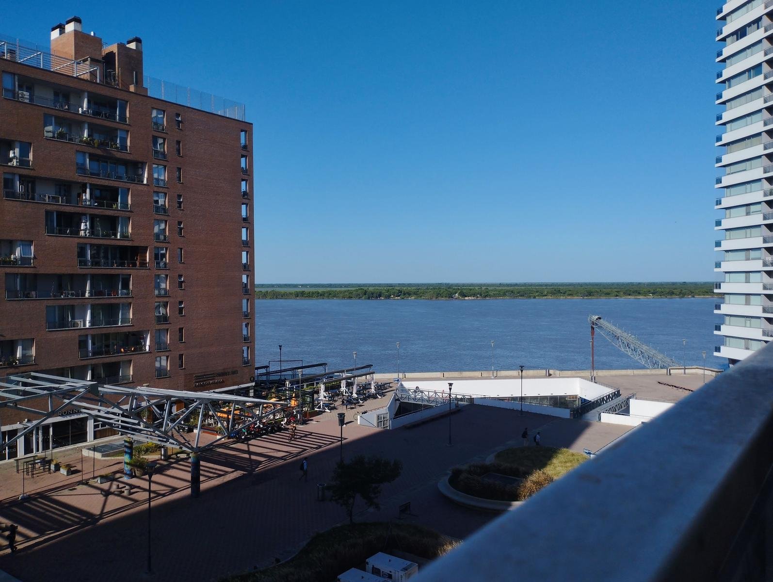 Excelente unidad con balcón con vista al río y a la Plaza de Ciudad Ribera. Living comedor con salida al balcón, cocina