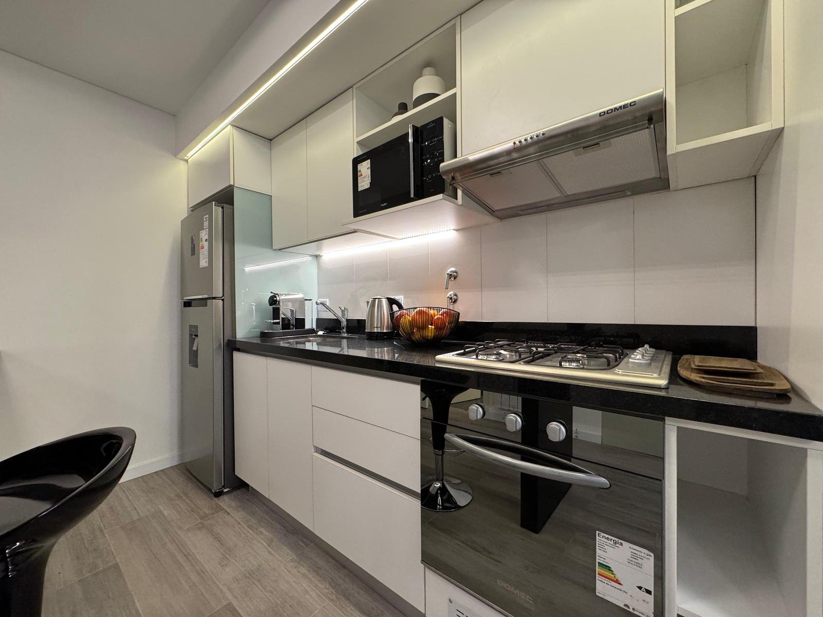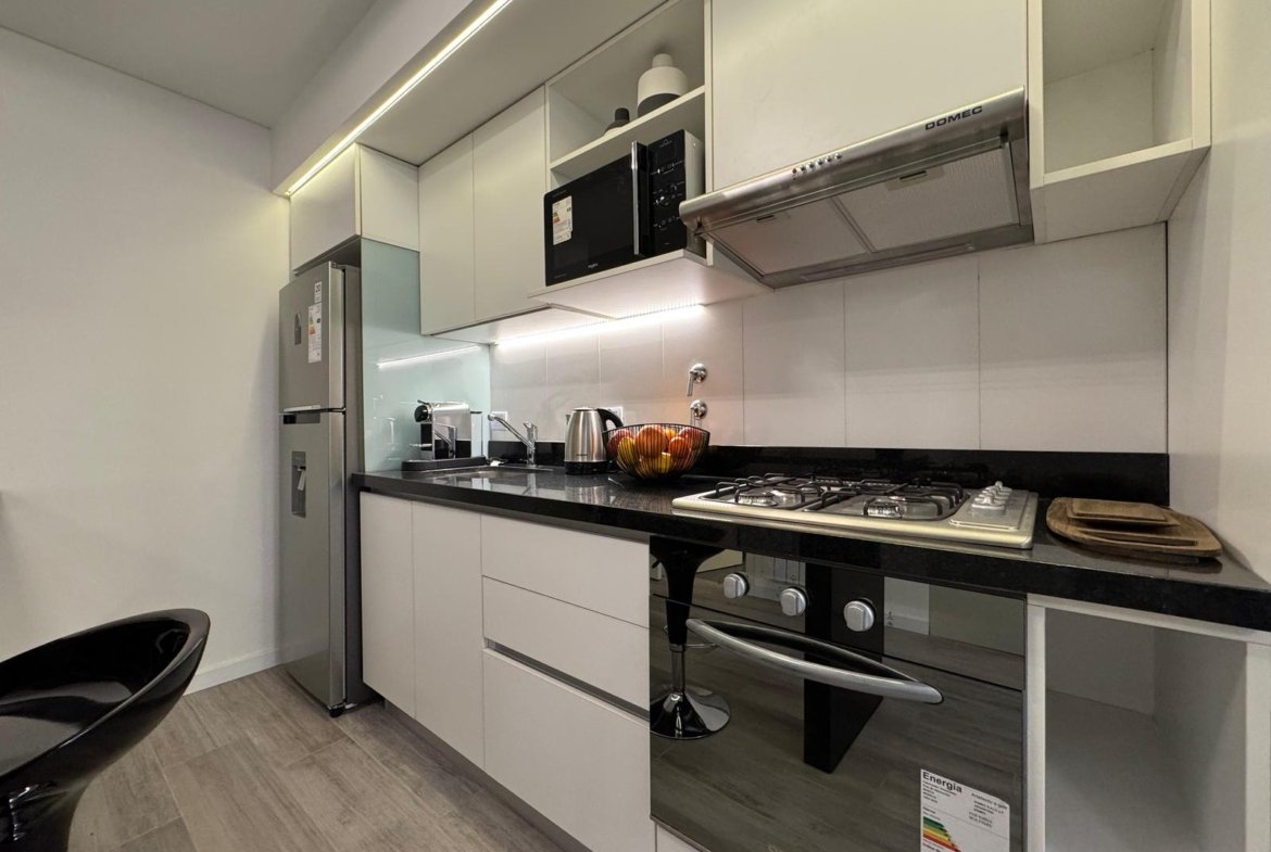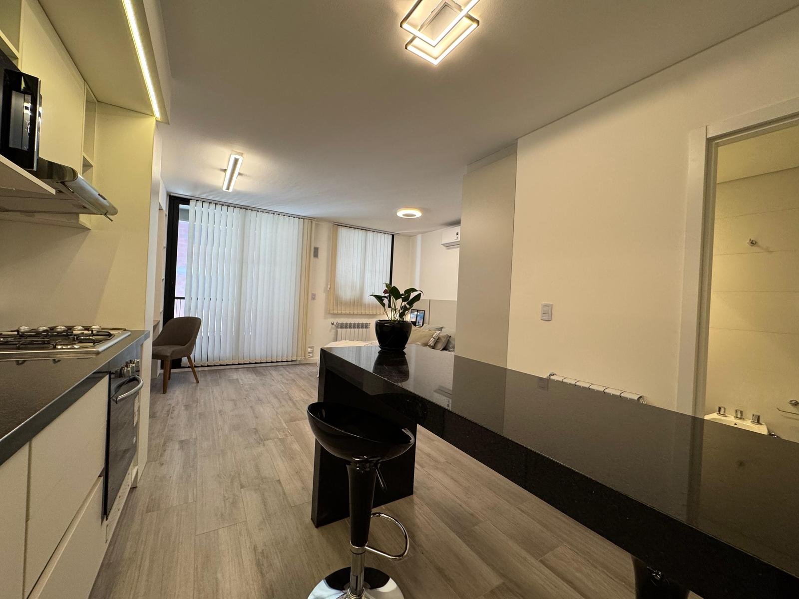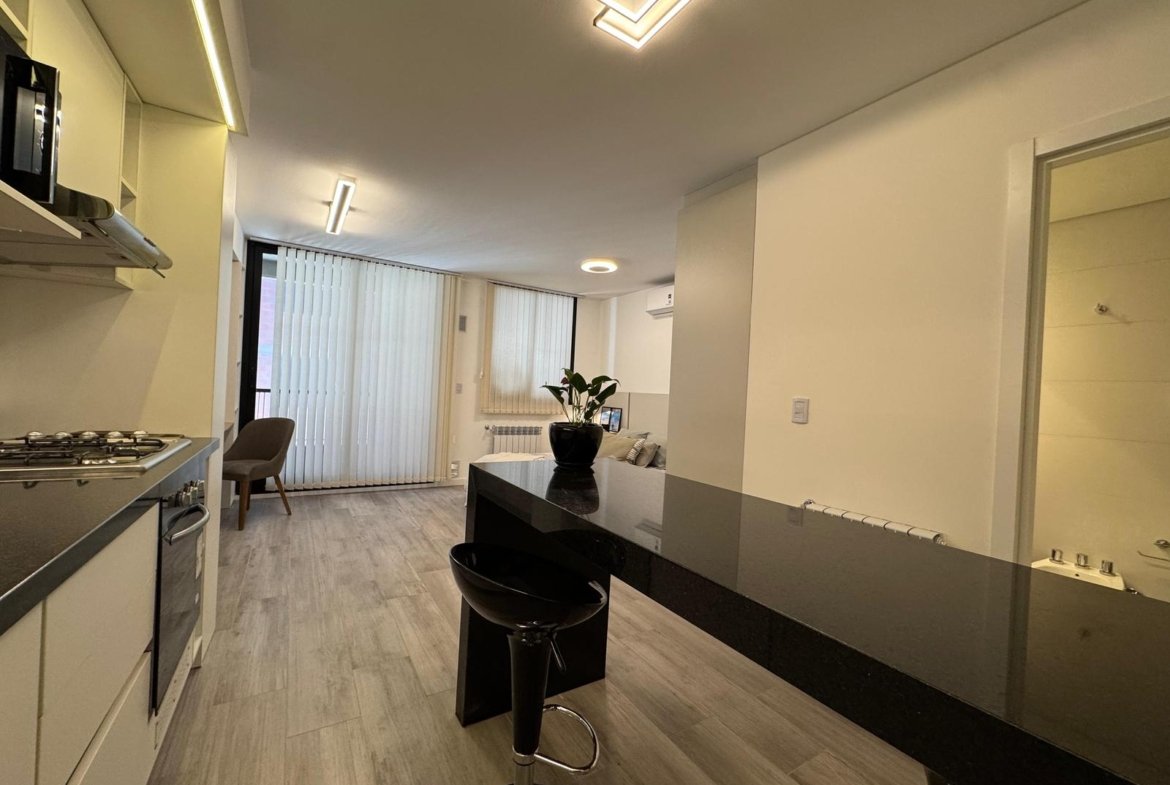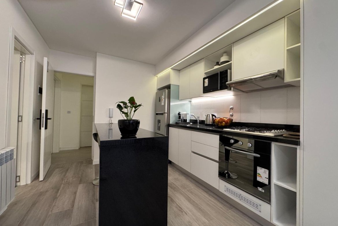 Edificio de excelente diseño y calidad, muy luminoso, cocina integrada, placares y balcón.