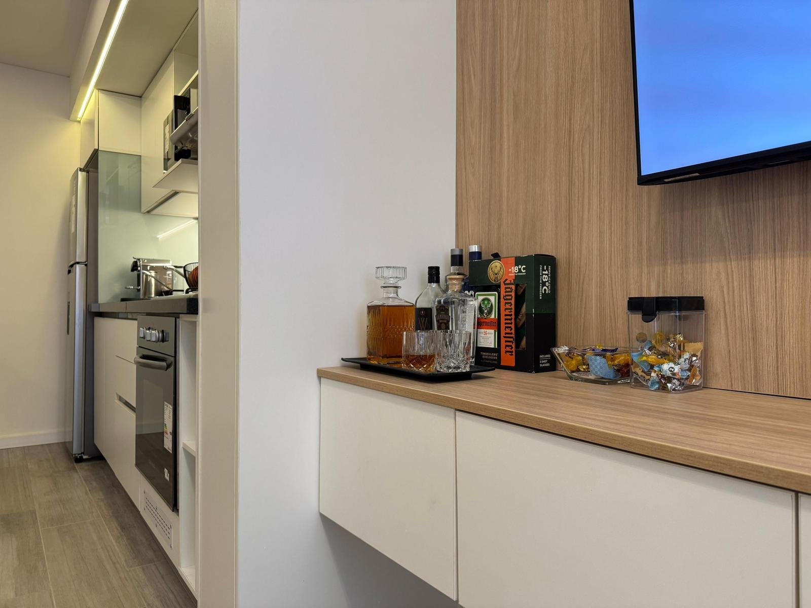 Aberturas aluminio/vidrio laminado, porcelanato, aire acondicionado, TV, teléfono, internet, termotanque, baño completo.Aberturas vidrio higrotérmico, porcelanato, cocina equipada, mesadas premium, caldera, radiadores, anafe gas, horno eléctrico, purificador, baños completos, placares espejados, instalación lavarropas, balcones con grill.