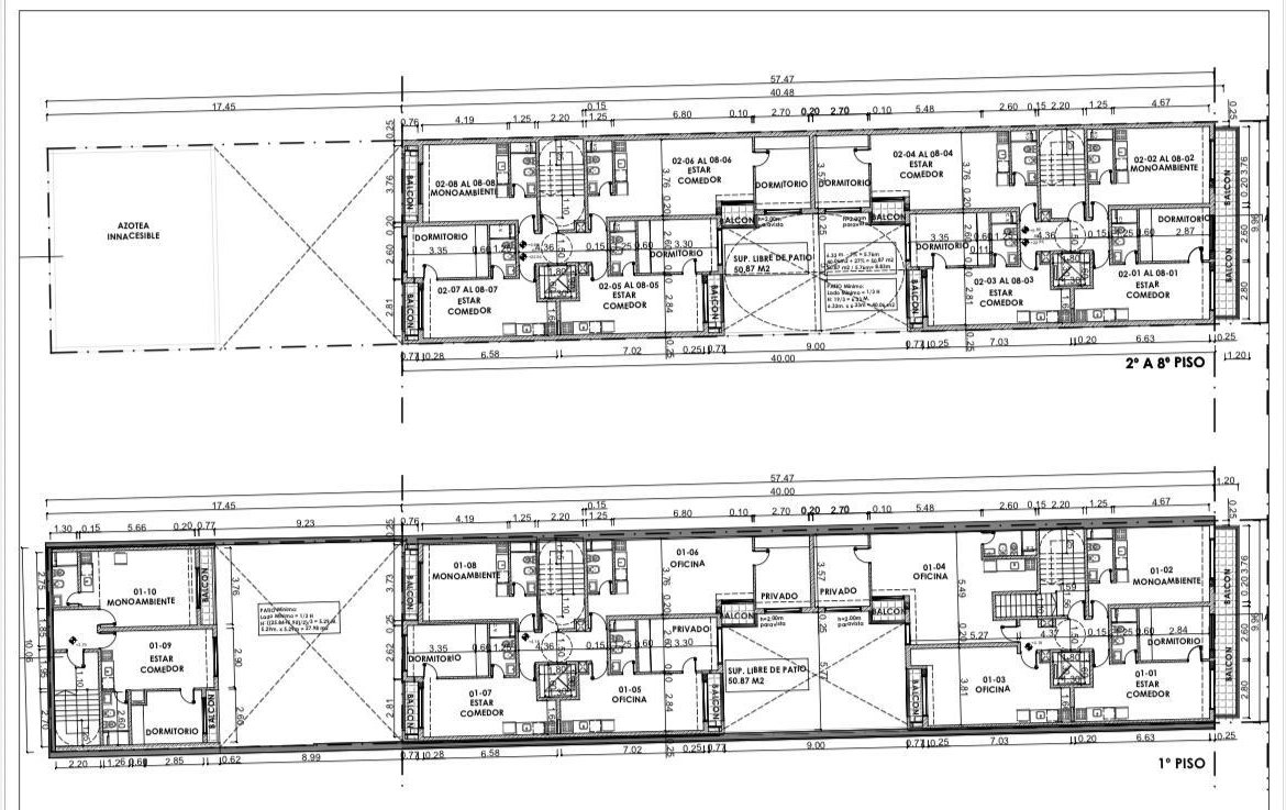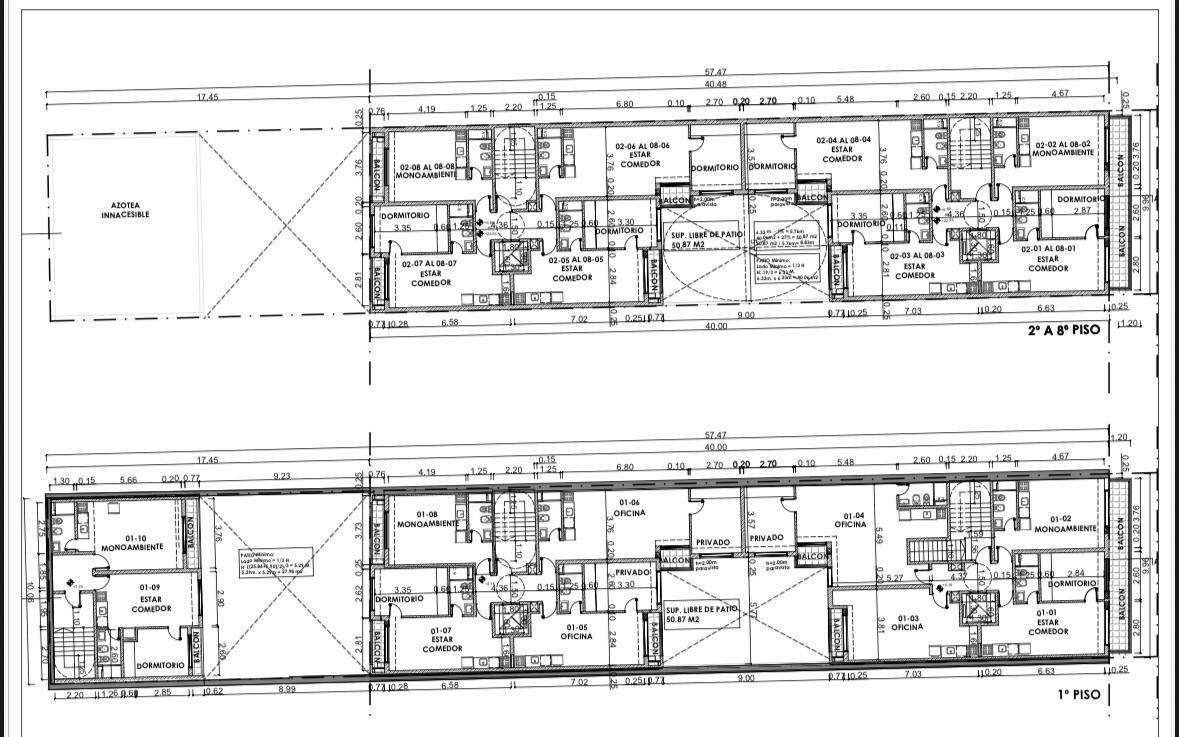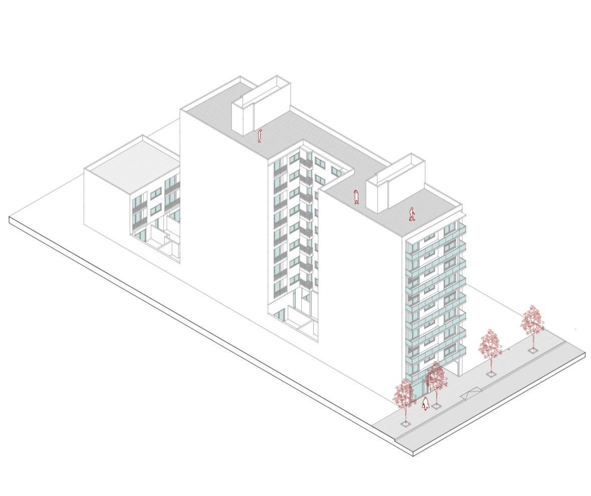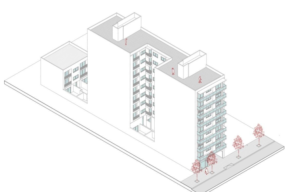 Proyecto: edificio compuesto por unidades de un dormitorio y monoambientes, cuenta con subsuelo con cocheras, planta baja y 8 pisos.