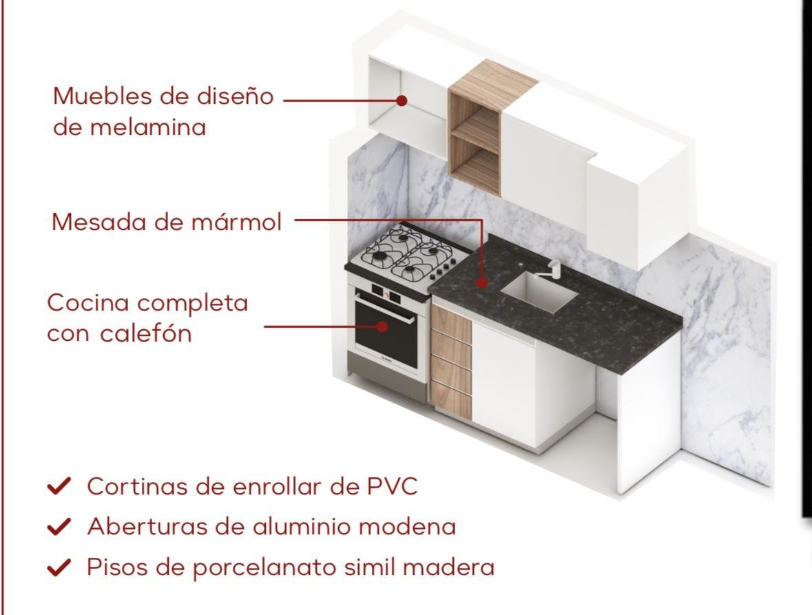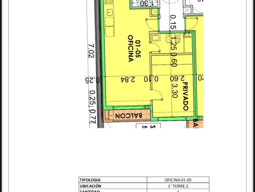 Descripción: ingreso a la oficina con cocina integrada, al frente el balcón, y a su izquierda una sala privada y el baño completo completo separado.