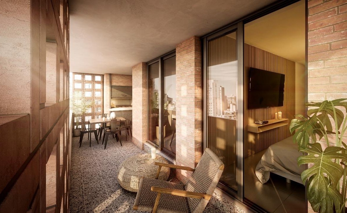 › Los balcones, de dimensiones generosas y pensados como “patios” en altura, cuentan con parrillas exclusivas y materiales de terminación de calidad, otorgando a este espacio el diseño y la importancia que merece.