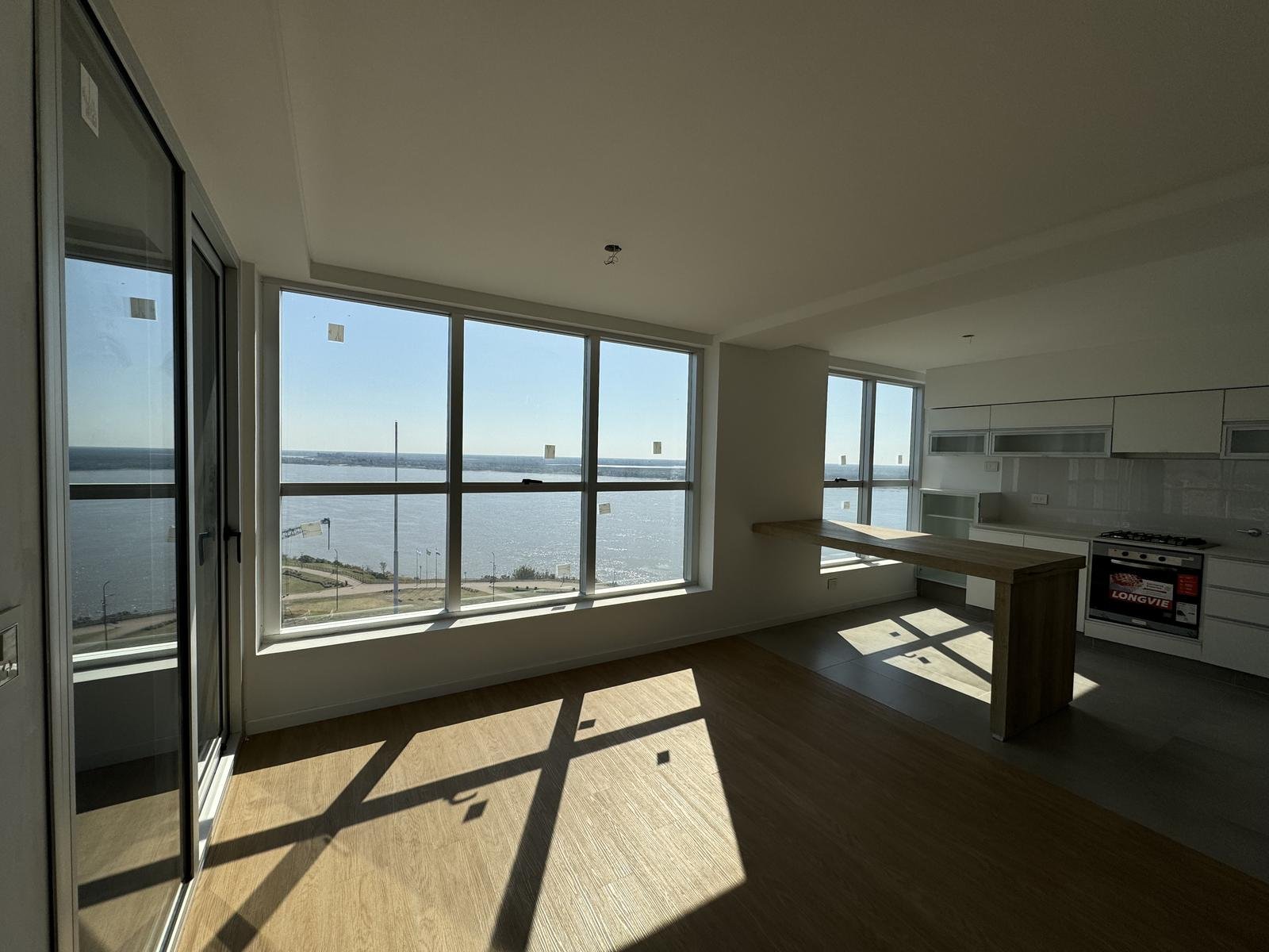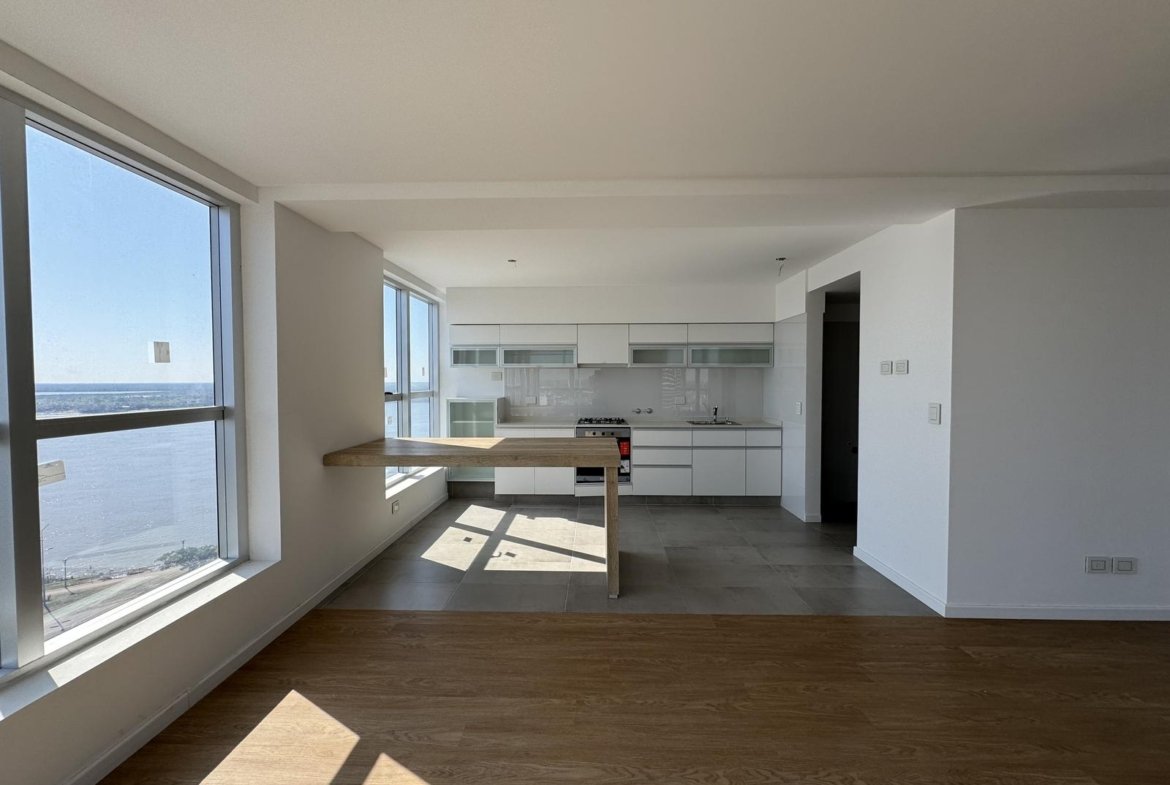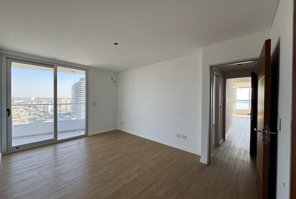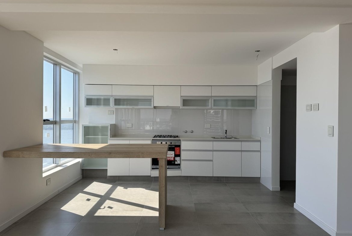 Características: Departamento de 2 dormitorios dispuestos en semipisos. Cada unidad cuenta con doble ingreso. Living-comedor con vista al río, semi integrada a la cocina con barra opcional. Toilette de recepción, lavadero semi-independiente. Todos los dormitorios principales con vestidor y baño en suite, y el secundario con placard. Todos los placares cuentan con puertas corredizas con espejo. Baños completos. Pisos de PVC de primera calidad y acabado Roble claro. Anafe y horno a gas, con instalación preparada para extractor. Griferia monocomando, bacha Johnson línea Luxor de acero inoxidable. Muebles de alacena y bajomesada completos, con herrajes de primera calidad y manijas integradas al diseño. Aberturas de aluminio anodizado con doble vidriado hermético (DVH) y vidrio exterior reflectivo. Sistema de calefacción a través de caldera dual mural en todos los ambientes. Superficie Exclusiva de 2 Dorm. 125 m² (contabilizando balcones)
