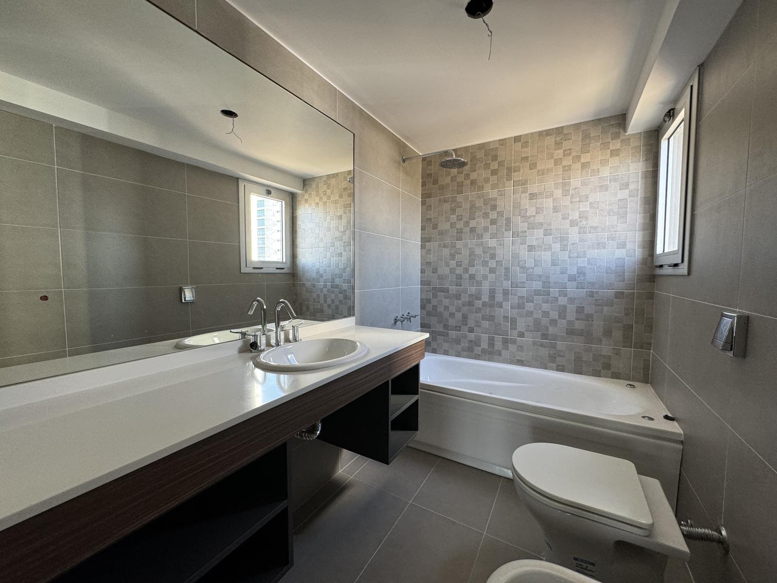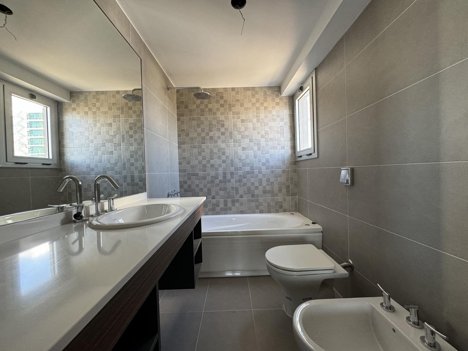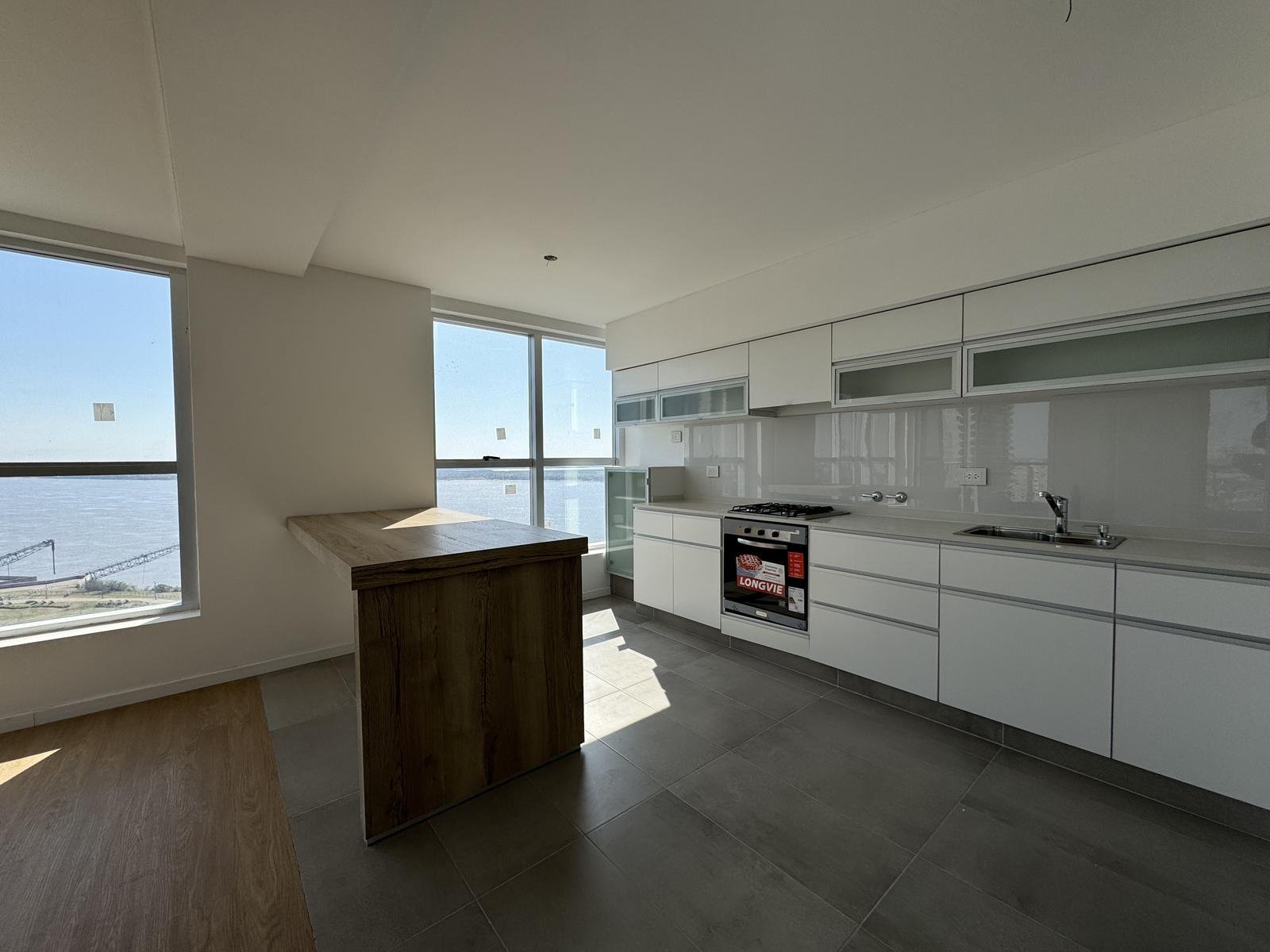 Características: Departamento de 2 dormitorios dispuestos en semipisos. Cada unidad cuenta con doble ingreso. Living-comedor con vista al río, semi integrada a la cocina con barra opcional. Toilette de recepción, lavadero semi-independiente. Todos los dormitorios principales con vestidor y baño en suite, y el secundario con placard. Todos los placares cuentan con puertas corredizas con espejo. Baños completos. Pisos de PVC de primera calidad y acabado Roble claro. Anafe y horno a gas, con instalación preparada para extractor. Griferia monocomando, bacha Johnson línea Luxor de acero inoxidable. Muebles de alacena y bajomesada completos, con herrajes de primera calidad y manijas integradas al diseño. Aberturas de aluminio anodizado con doble vidriado hermético (DVH) y vidrio exterior reflectivo. Sistema de calefacción a través de caldera dual mural en todos los ambientes. Superficie Exclusiva de 2 Dorm. 125 m² (contabilizando balcones)