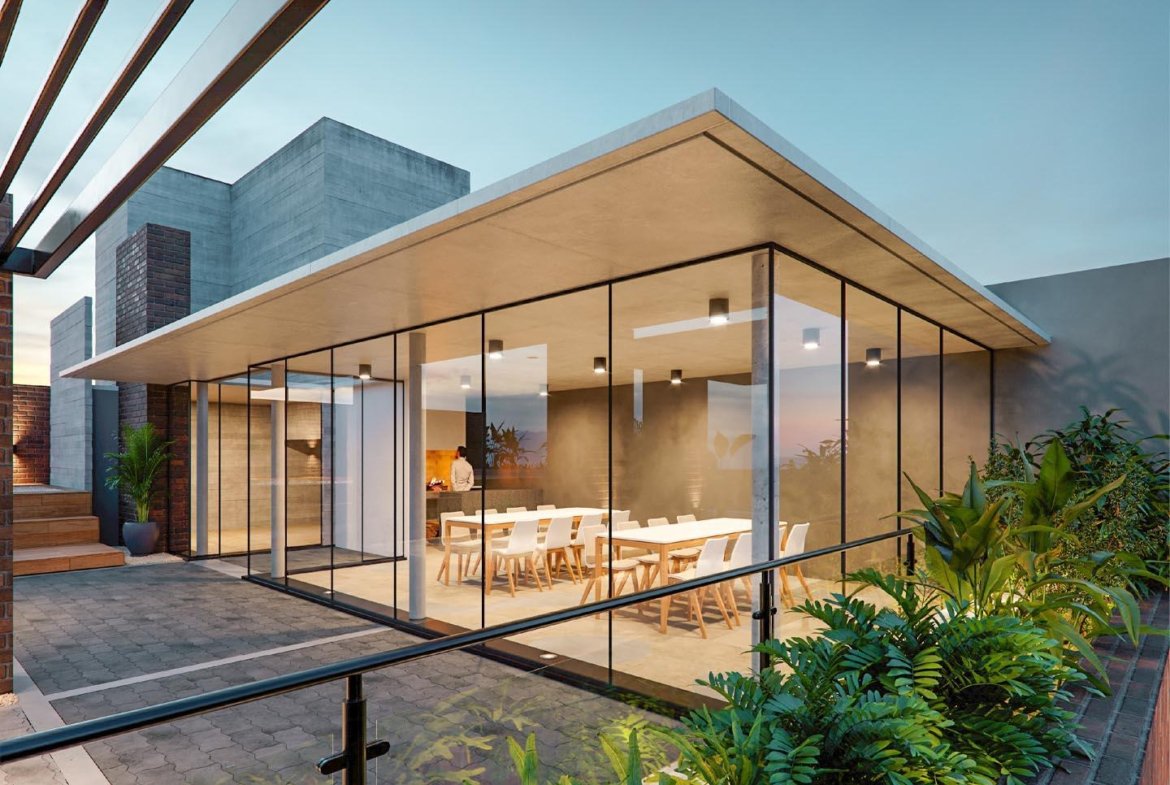 Desarrollo horizontal ubicado en la intersección de calle de 9 de Julio y Dorrego. Edificio compuesto por unidades monoambientes, 2 y 3 dormitorios con amplios balcones.