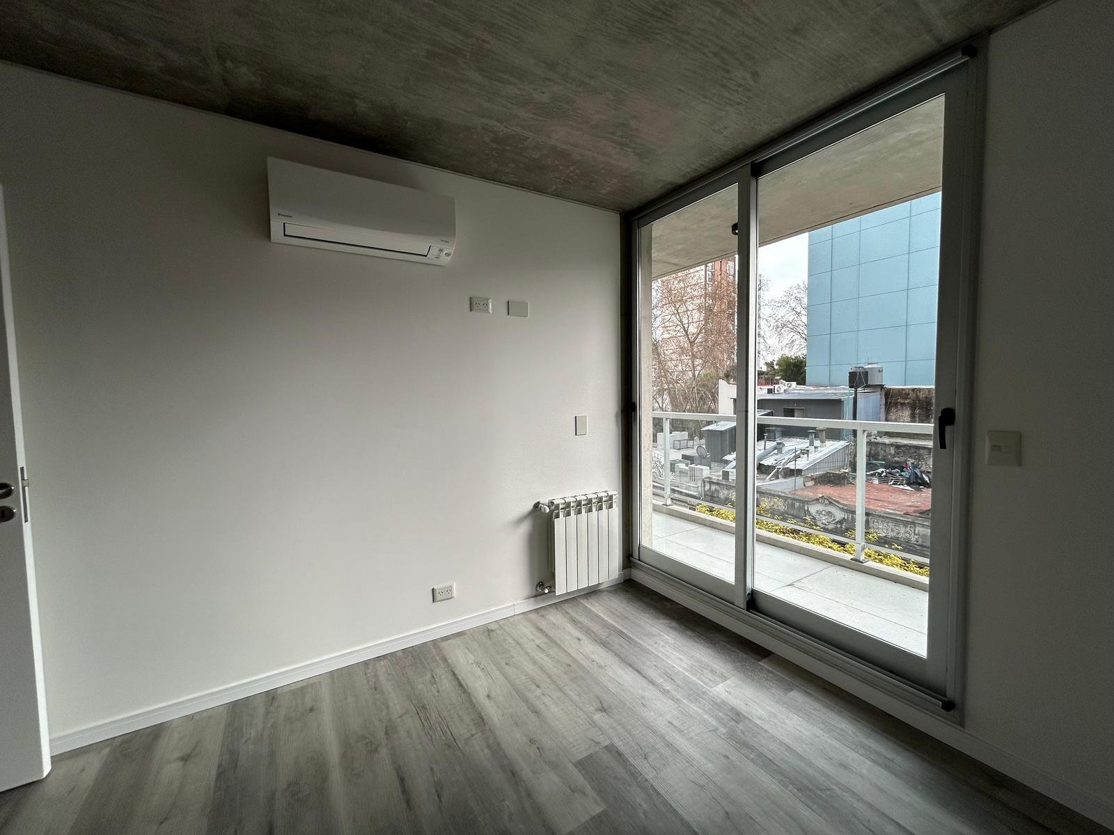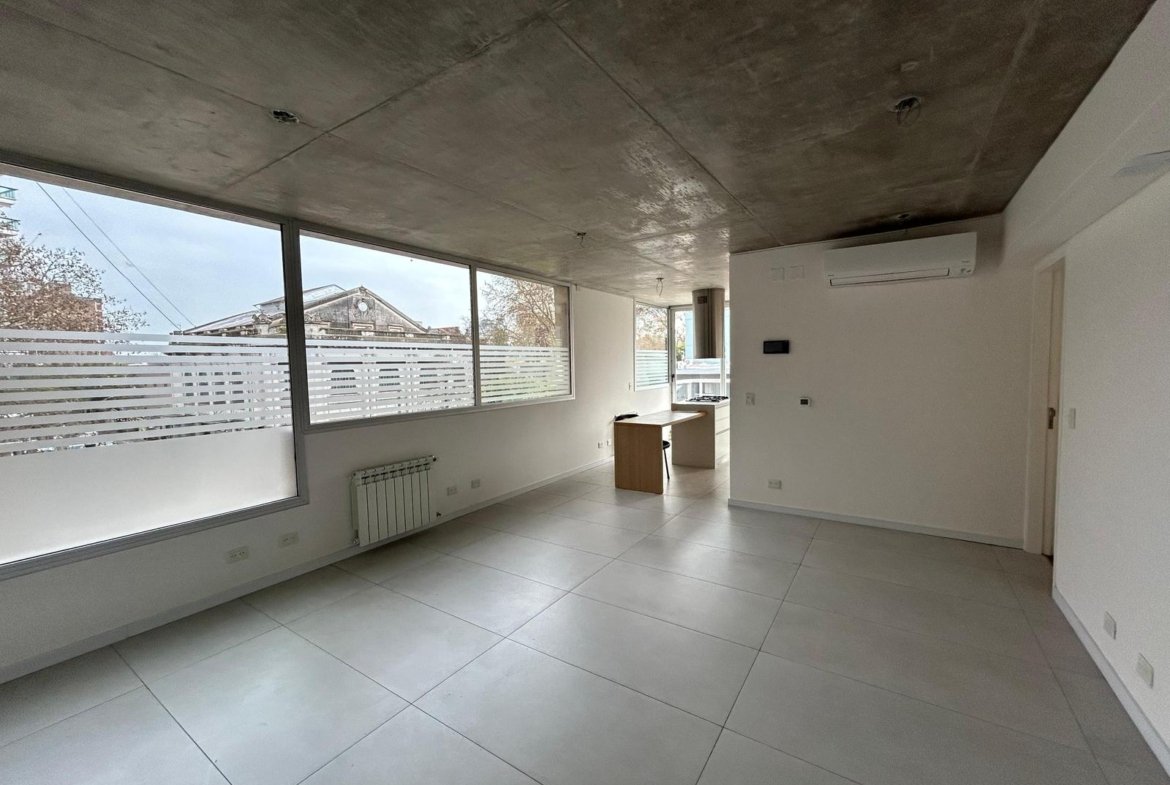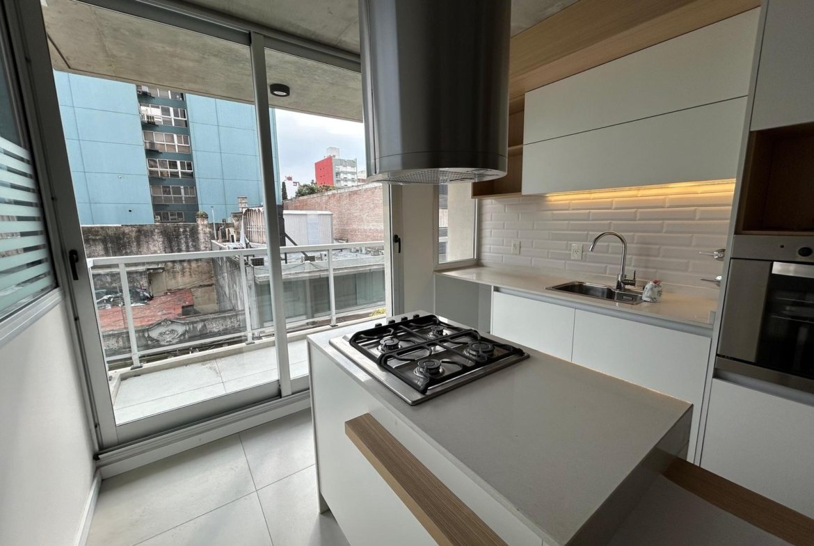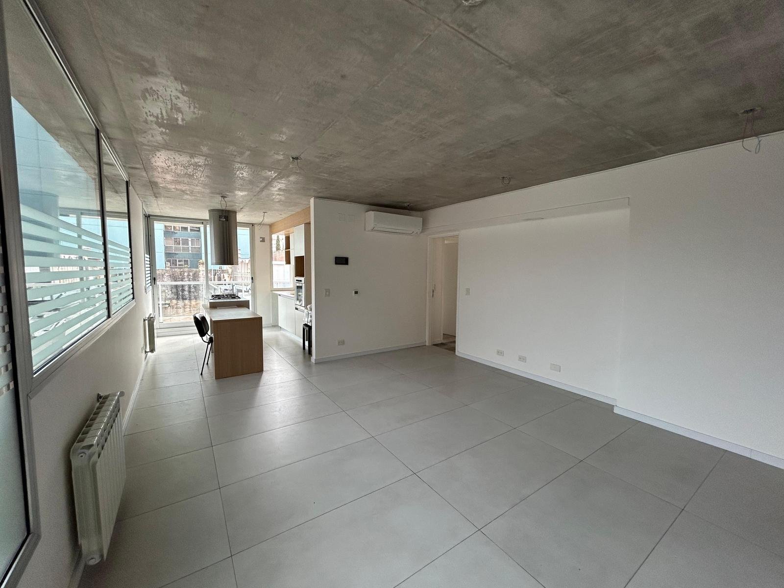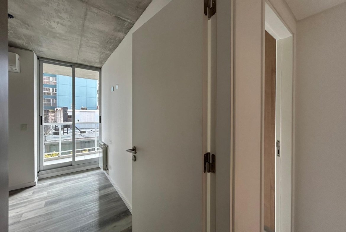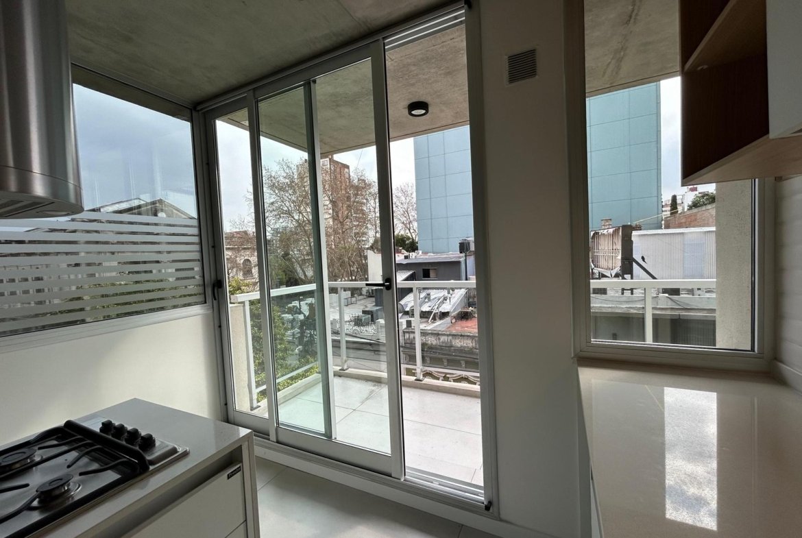 Al ingresar, se encuentra un amplio living-comedor-cocina con balcón al frente, orientado hacia el norte.