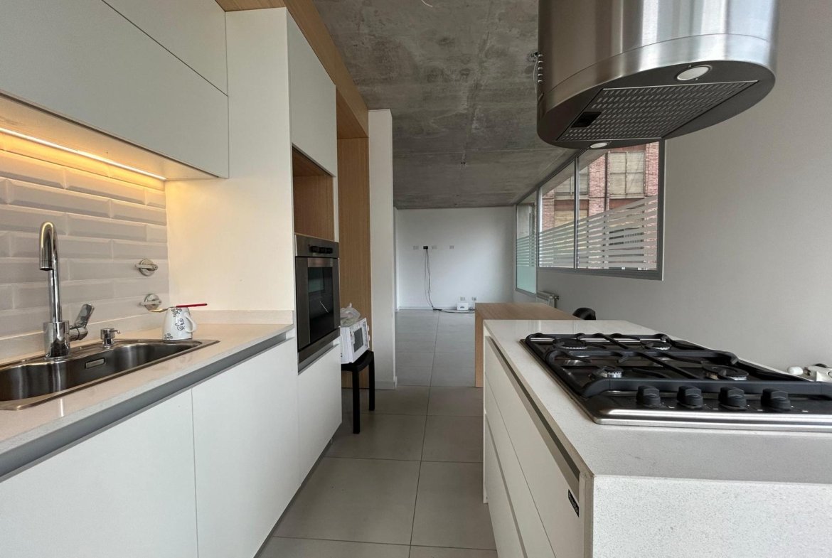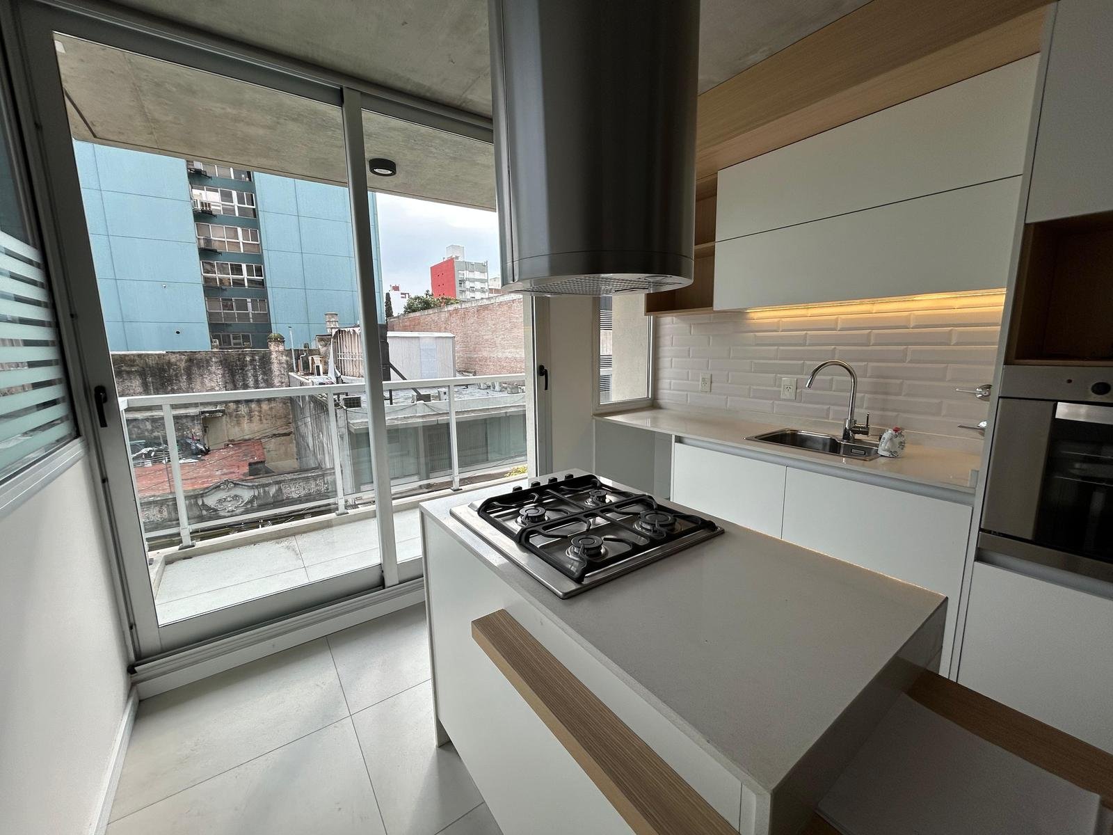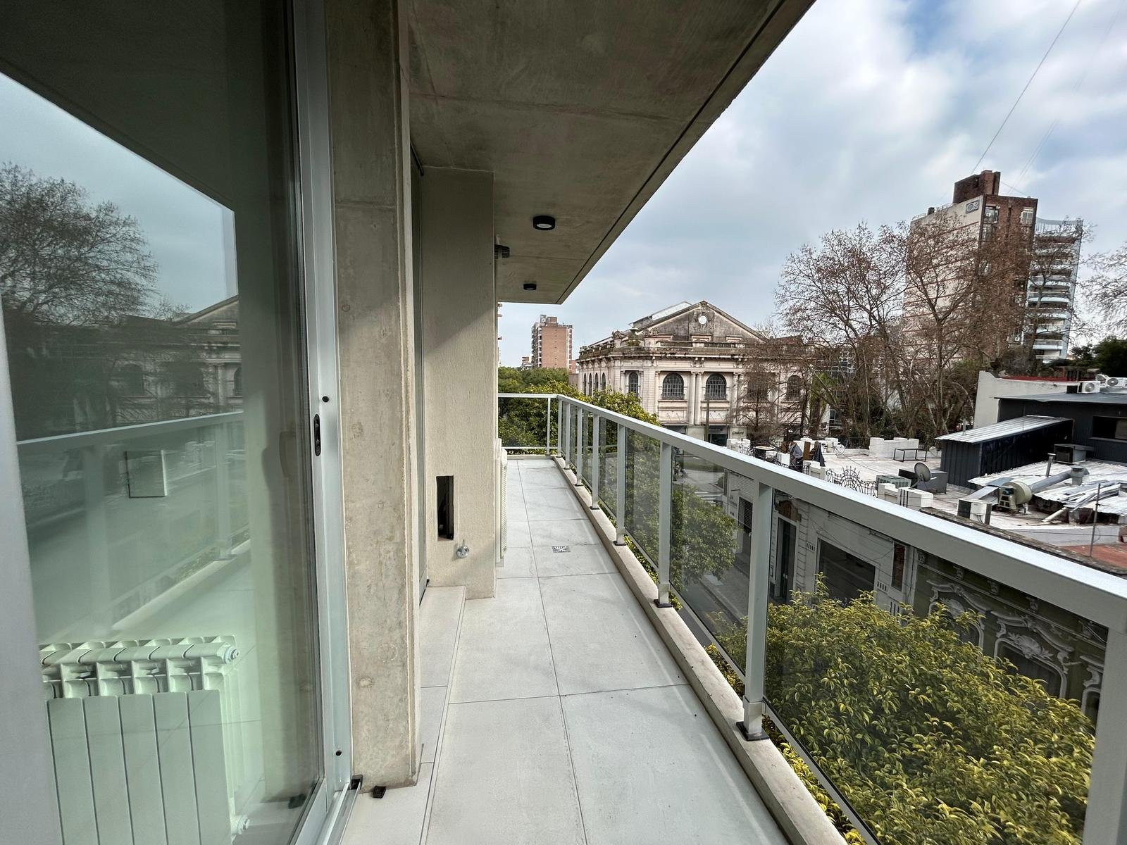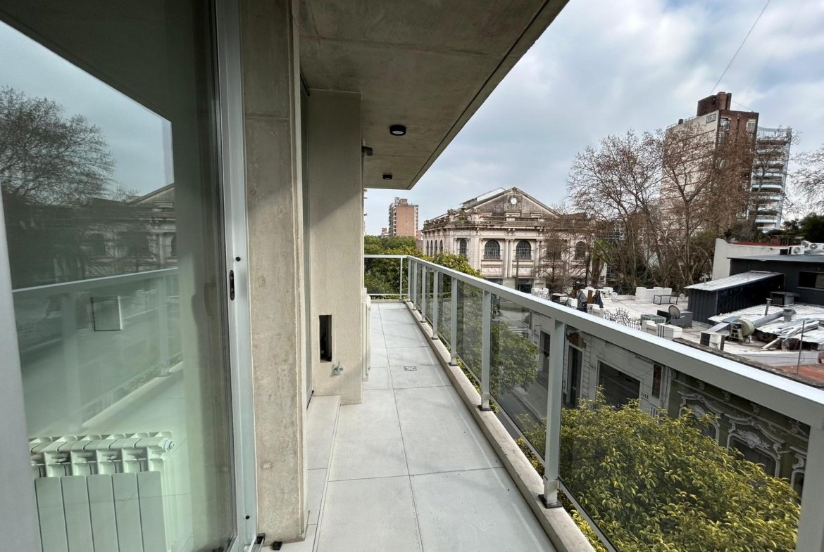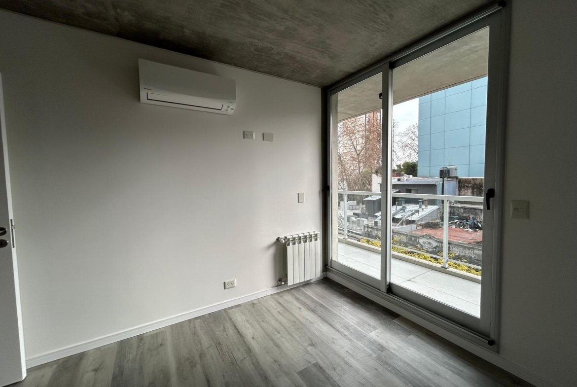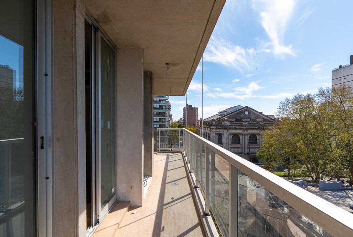 Al ingresar, se encuentra un amplio living-comedor-cocina con balcón al frente, orientado hacia el norte.