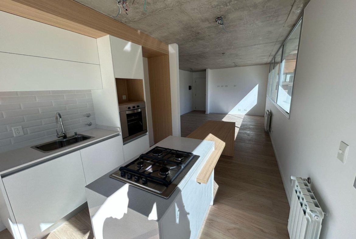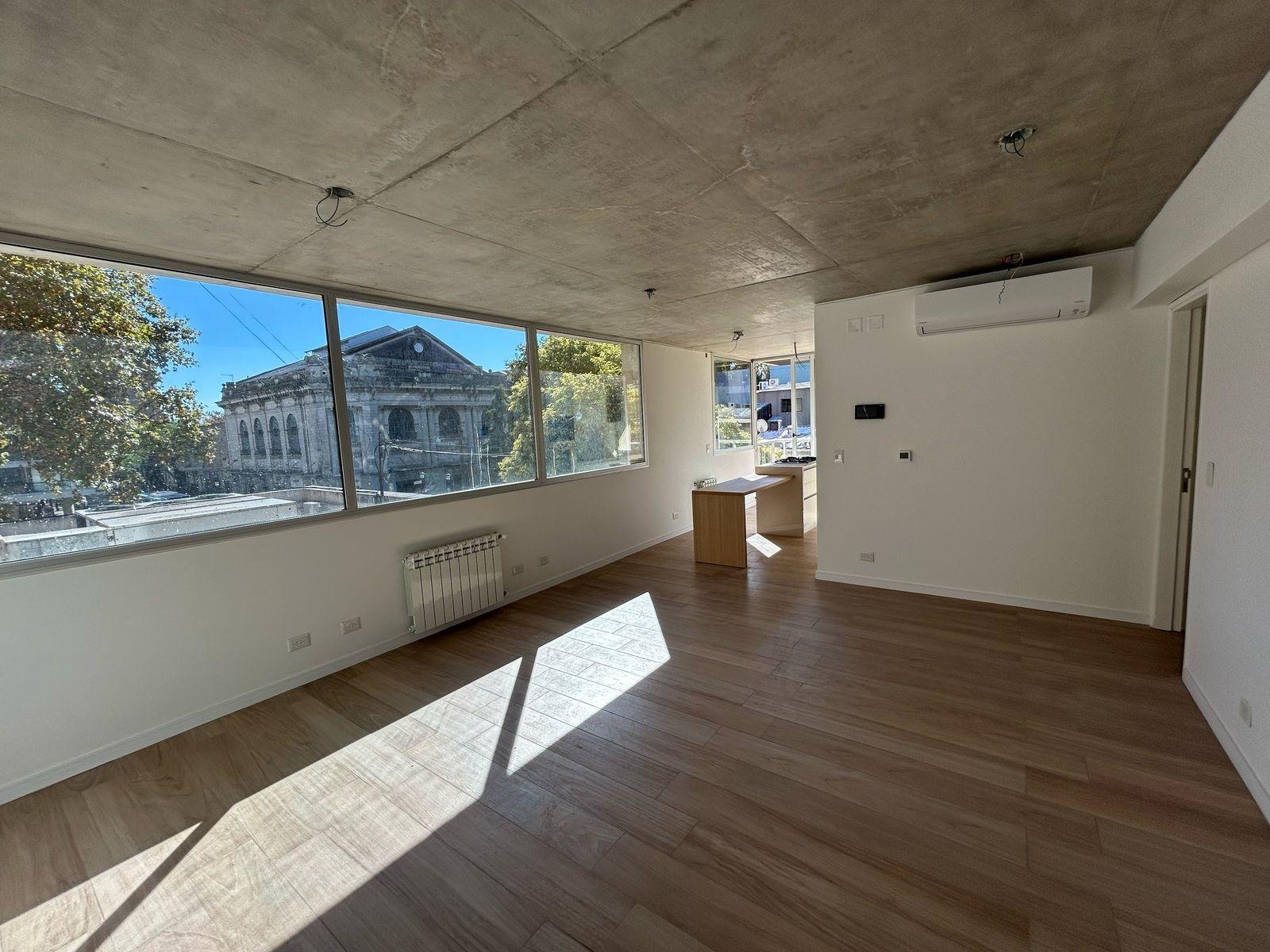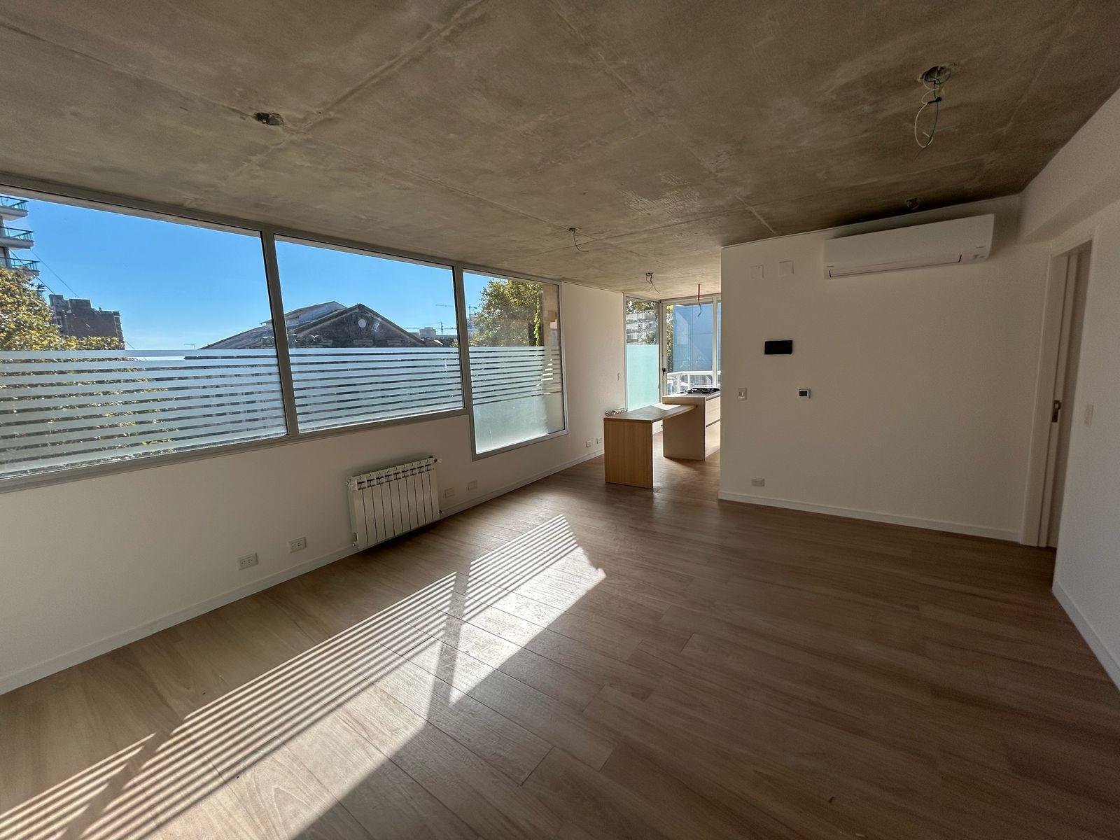 Al ingresar, se encuentra un amplio living-comedor-cocina con balcón al frente, orientado hacia el norte.