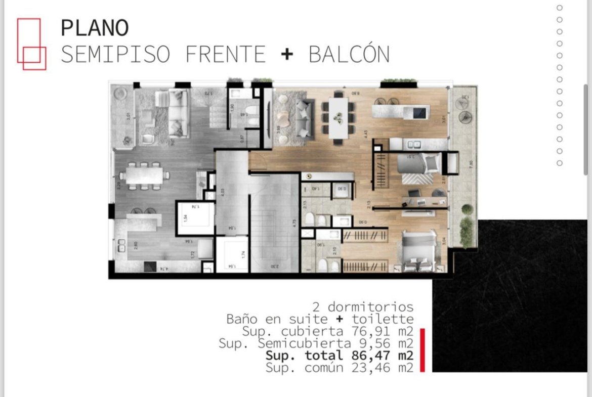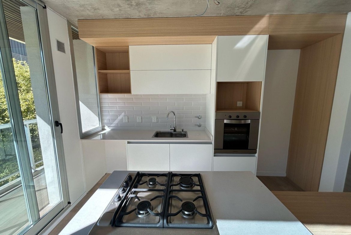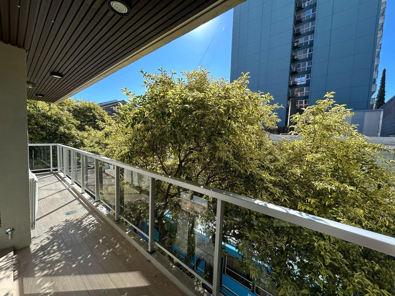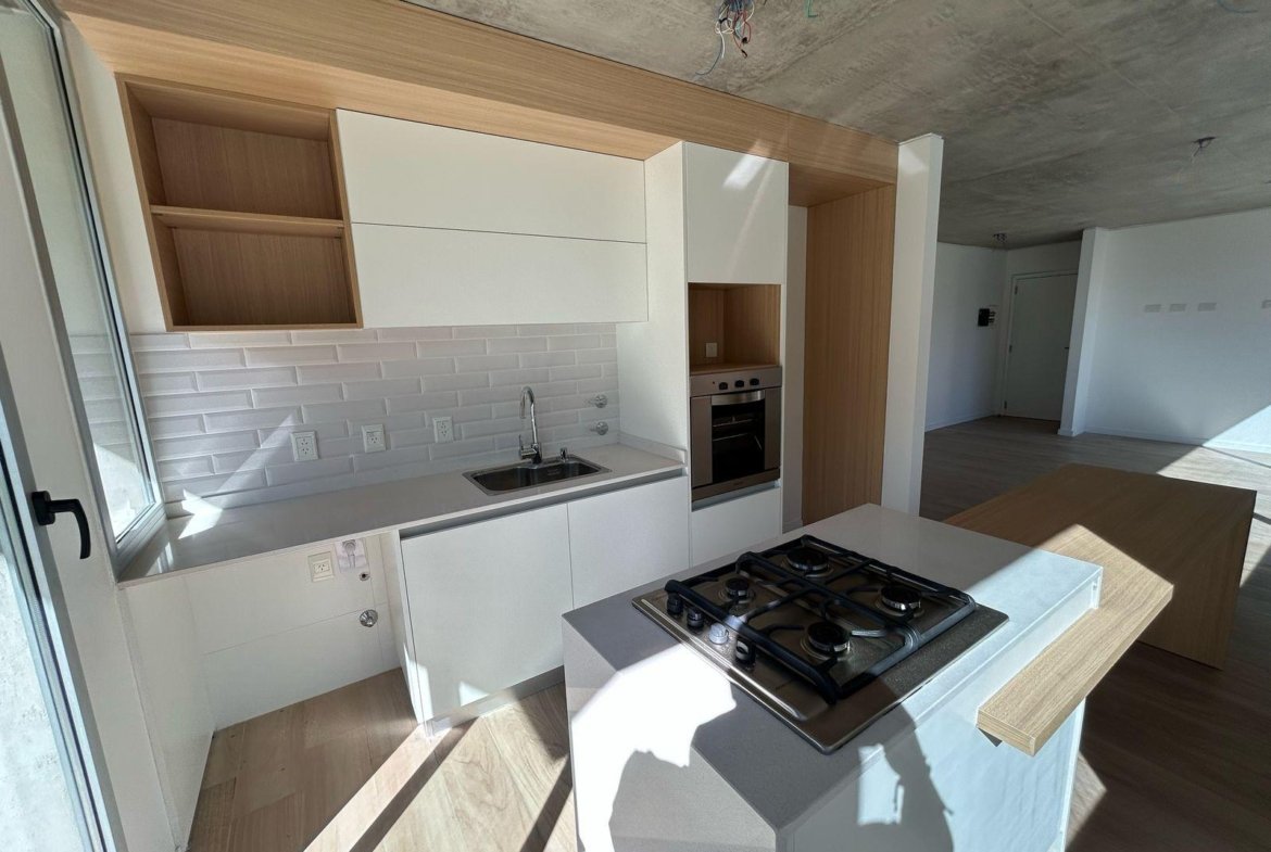 Al ingresar, se encuentra un amplio living-comedor-cocina con balcón al frente, orientado hacia el norte.