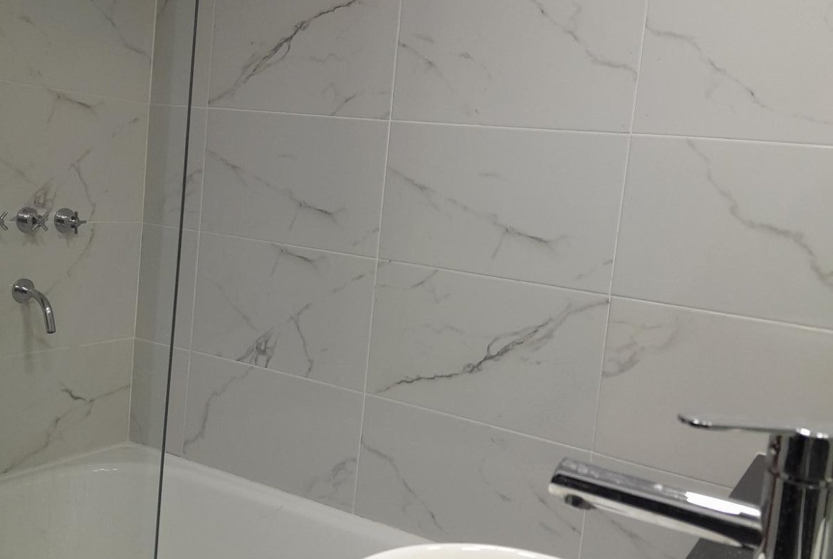 Baño completo con ventilación. Unidad equipada con mobiliario de diseño exclusivo divisorio de placar con interiores y espejo. Amplias aberturas y balcón al frente con piel de vidrio. Departamento de calidad.