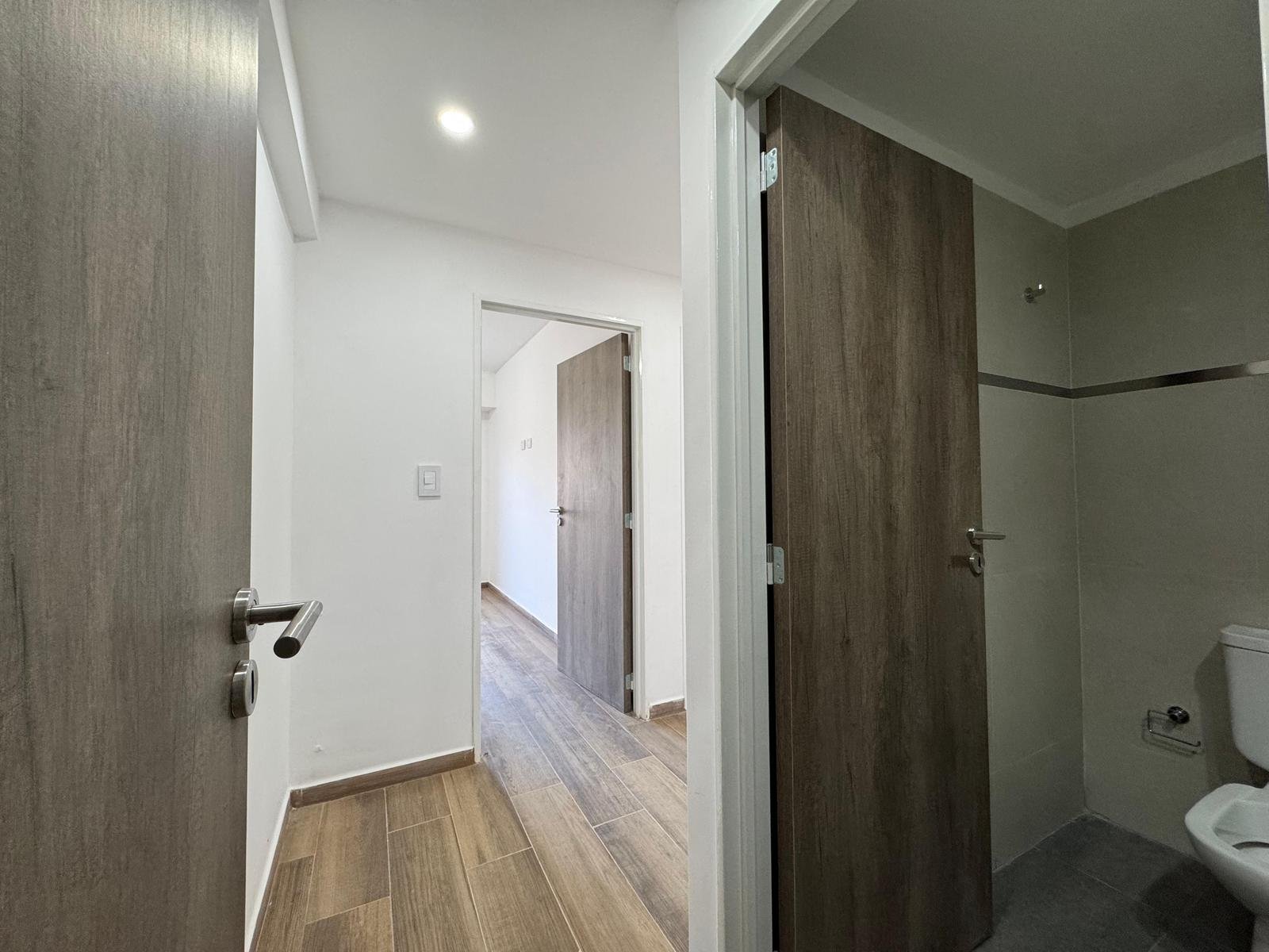 Al ingresar, se encuentra un amplio living-comedor-cocina con balcón al contra frente, orientado hacia el sur.