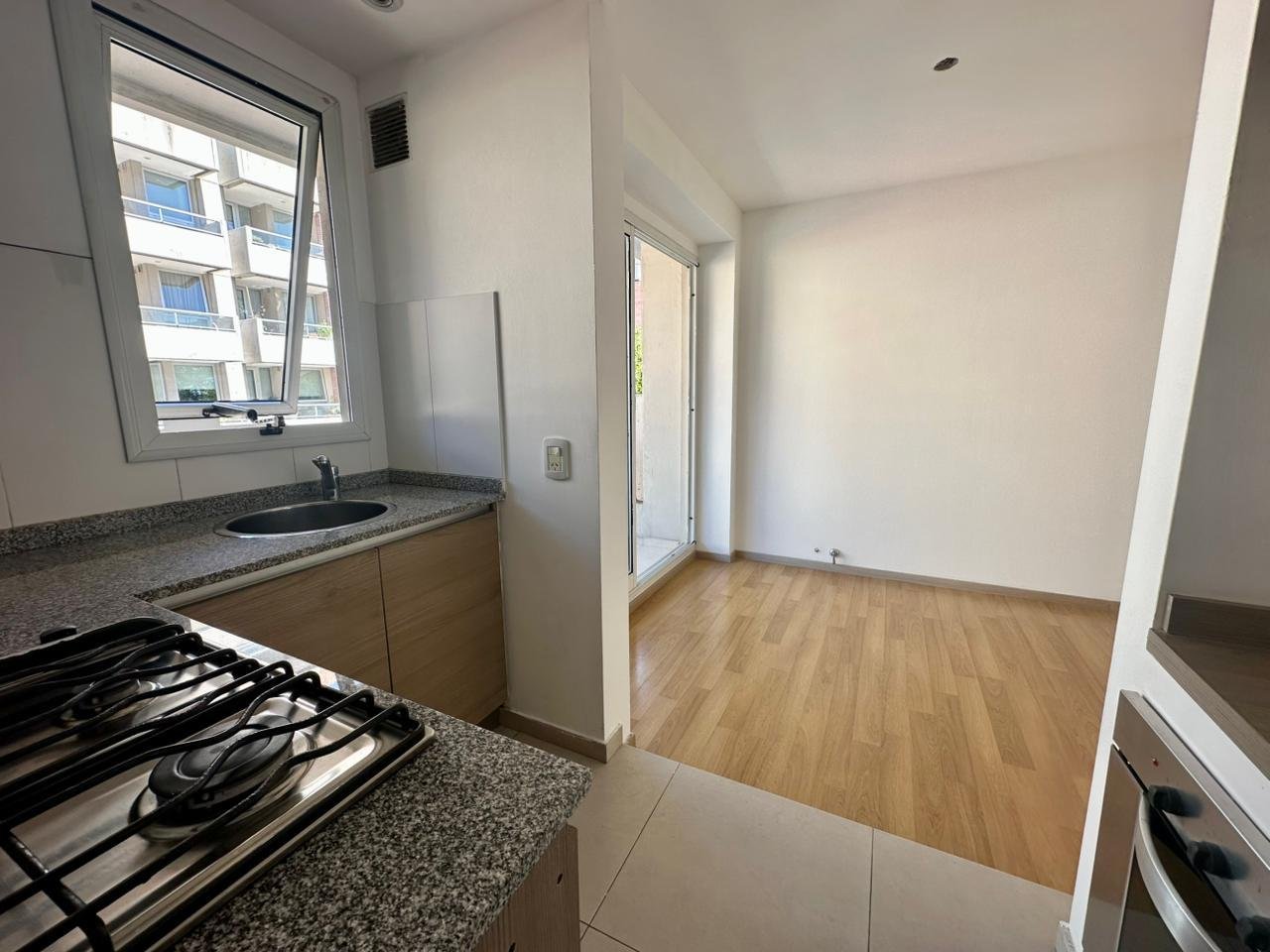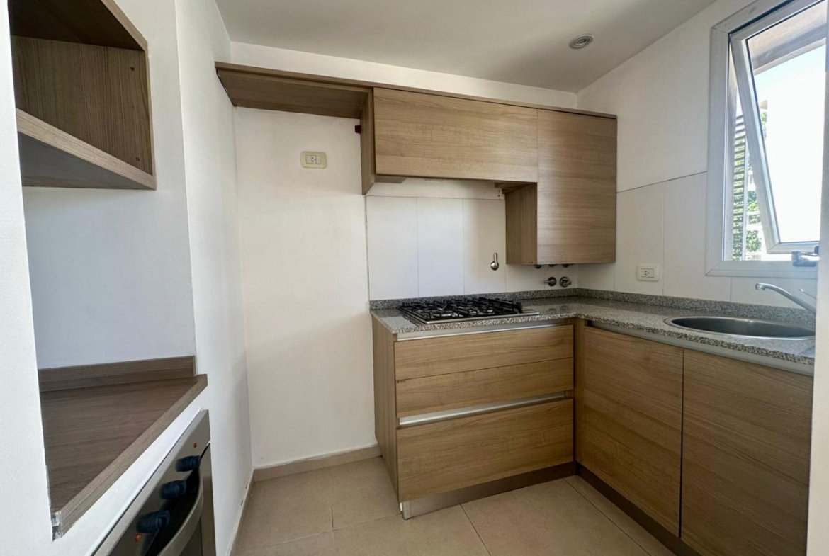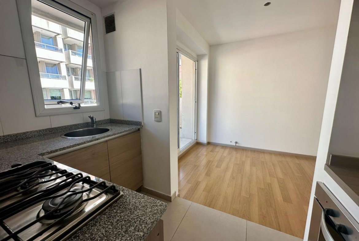 Descripción: Semipiso de 1 dormitorio muy luminoso con orientación al Este con ventilación cruzada. Ingreso al living comedor con preinstalación para aire acondicionado y pico de gas para estufa, a su izquierda se encuentra la cocina semi integrada con amoblamiento completo, horno empotrado eléctrico marca Longvie, anafe a gas con 4 hornallas, conexión para lavarropas y caldera. Luego se encuentra el amplio balcón al frente. A su derecha el baño completo con bañera y el dormitorio con placares y estufa.