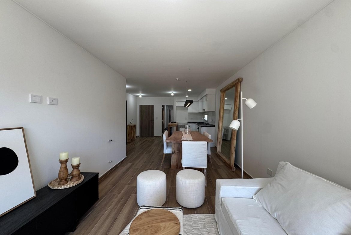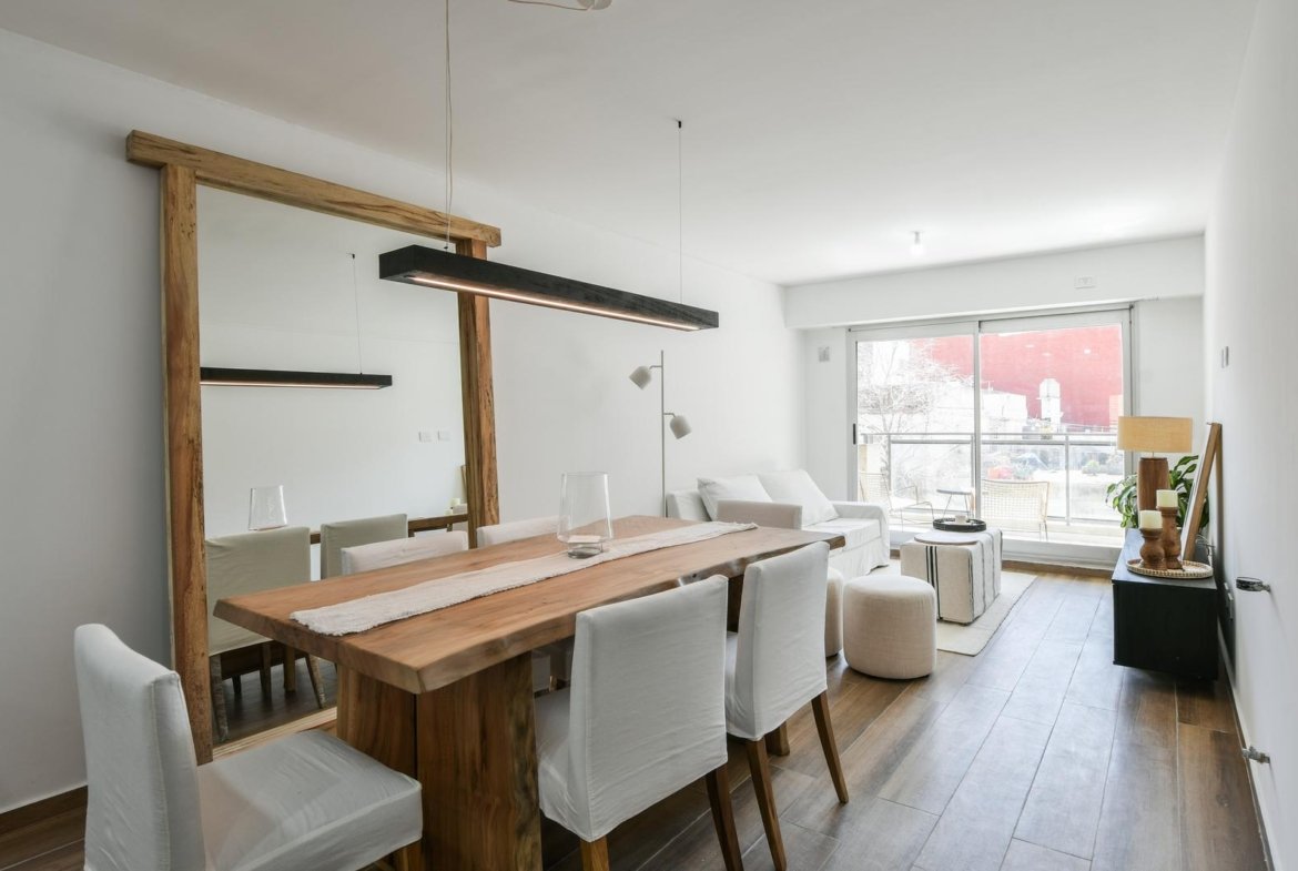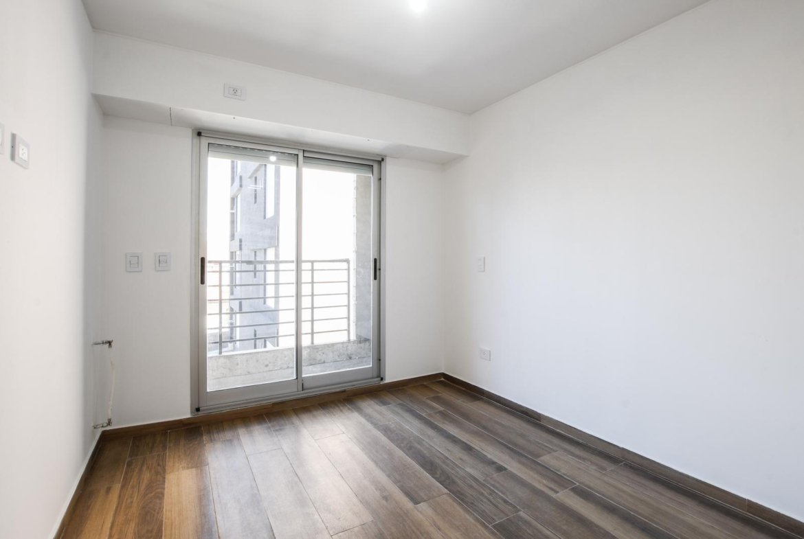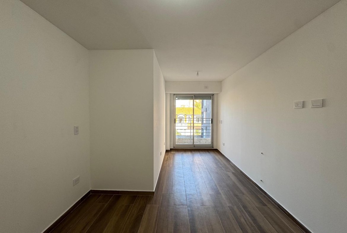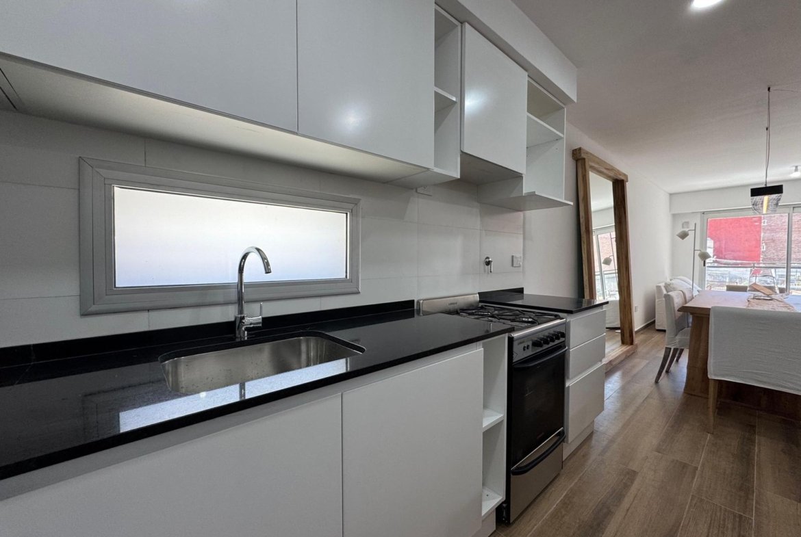 Al ingresar, se encuentra un amplio living-comedor-cocina con balcón al frente, orientado hacia el norte.