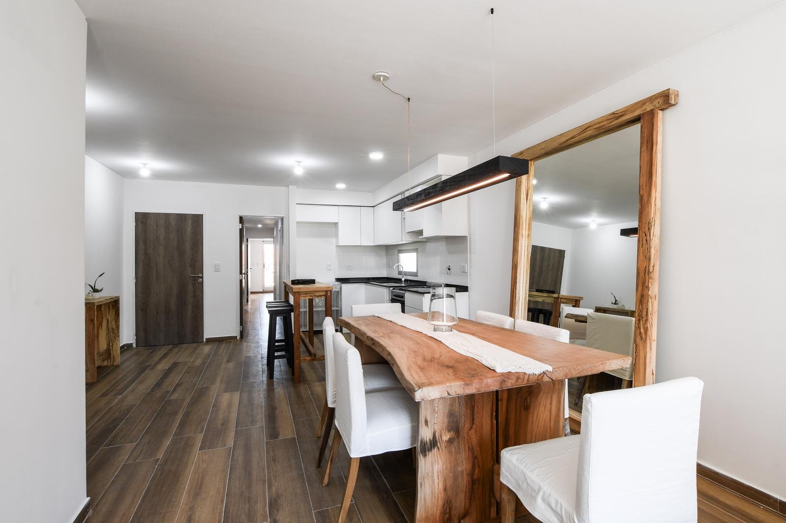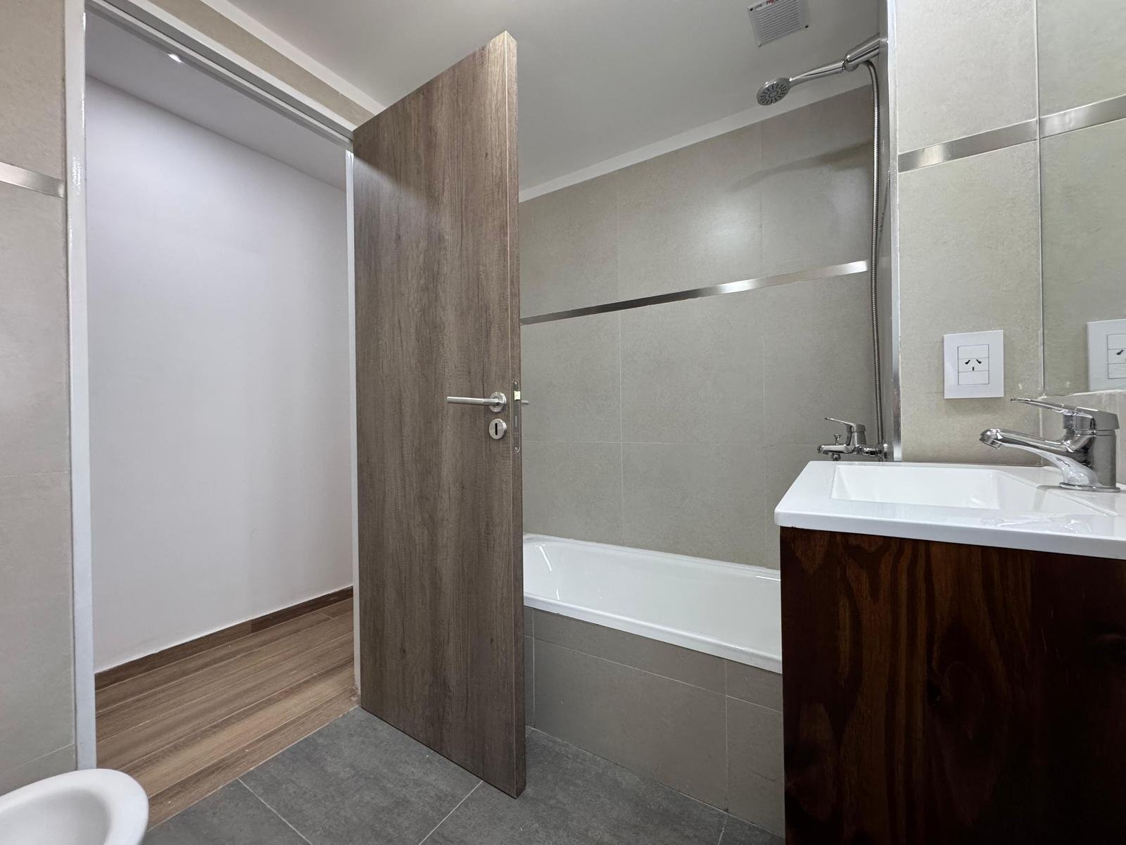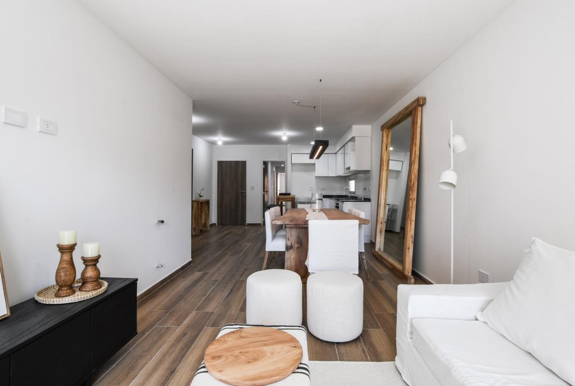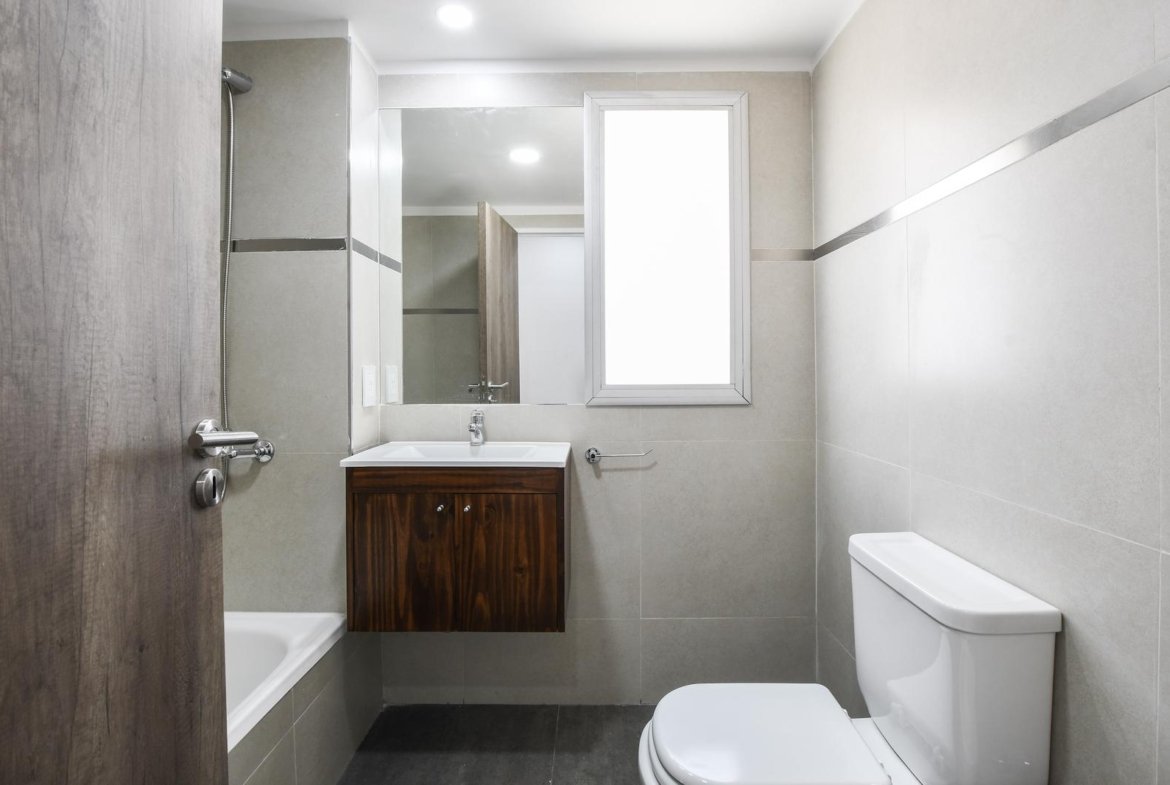 Al ingresar, se encuentra un amplio living-comedor-cocina con balcón al frente, orientado hacia el norte.