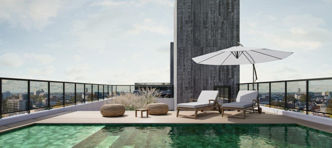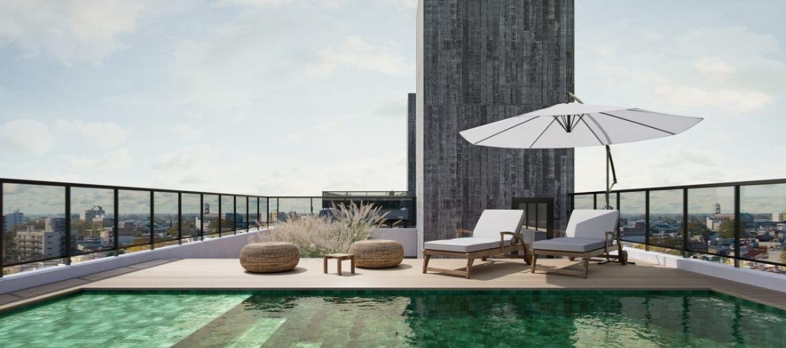 El edificio se desarrolla en planta baja y 9 pisos, con un diseño moderno, materiales de calidad y espacios pensados para el confort. Cuenta con un ingreso de jerarquía con control de acceso, ascensor y cocheras distribuidas en tres niveles con portón automatizado (subsuelo, planta baja y primer piso), además de espacios para motos y bicicletas. Desde el segundo al sexto piso se disponen cuatro departamentos por planta, mientras que del séptimo al noveno piso son semipisos. El proyecto también incorpora un pulmón verde en planta baja y primer piso, gimnasio en el primer piso, galería con fogonero en el segundo piso y en la azotea un quincho con parrillero, pileta y solárium.