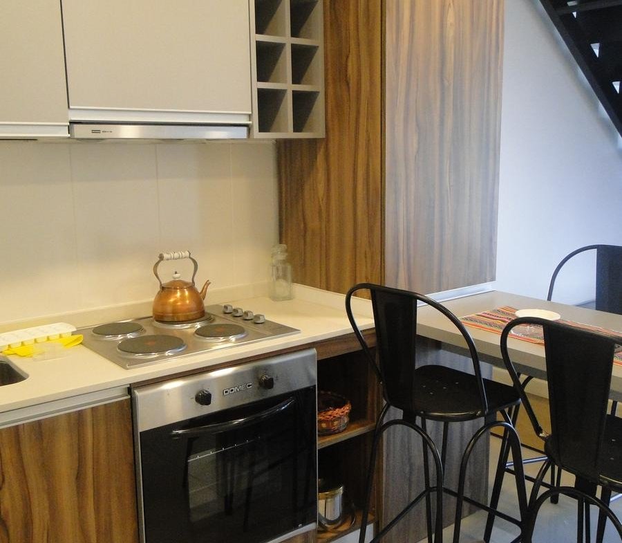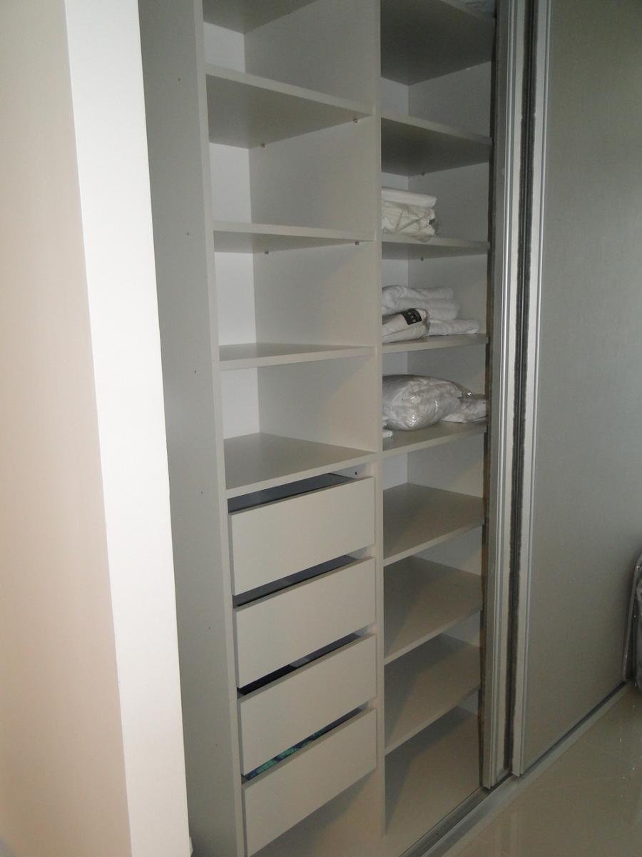 Amoblamiento de cocina completo con bajo mesadas,termotanque eléctrico,mesada de Silestone,aberturas de aluminio con vidrio laminado de seguridad,revestimientos en porcelanato,baño completo,interiores de placares completos con puertas corredizas y frente con espejo.