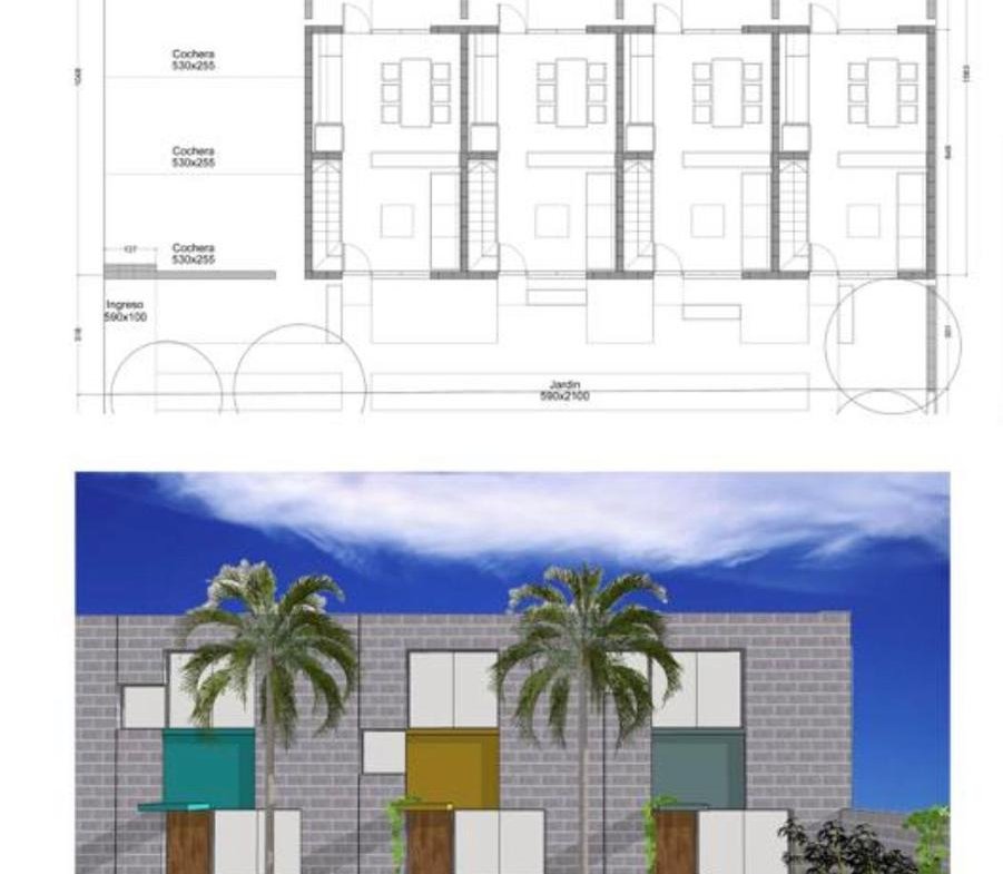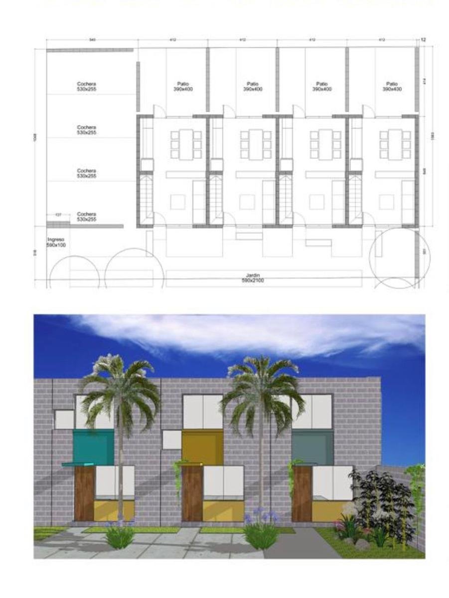 Cada unidad cuenta con 80 m² totales (52 m² cubiertos), dos dormitorios, cochera individual, patio privado de 4 x 4 metros y un espacio común de 16 x 6 metros que aporta amplitud y confort al conjunto.