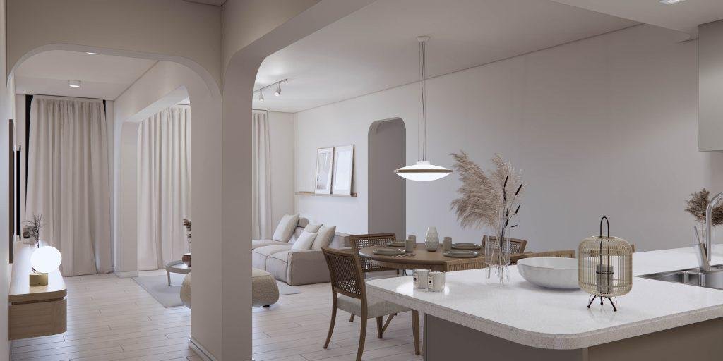 • LIVING Y DORMITORIO: Porcelanatos o pisos vinilicos y pre instalación para aire acondicionado. Placares completos con frente de melamina 18 mm y kit aluminio para sistema corredizo. En unidades de 2 y 3 dormitorios calefacción por radiadores y agua caliente a través de caldera dual.