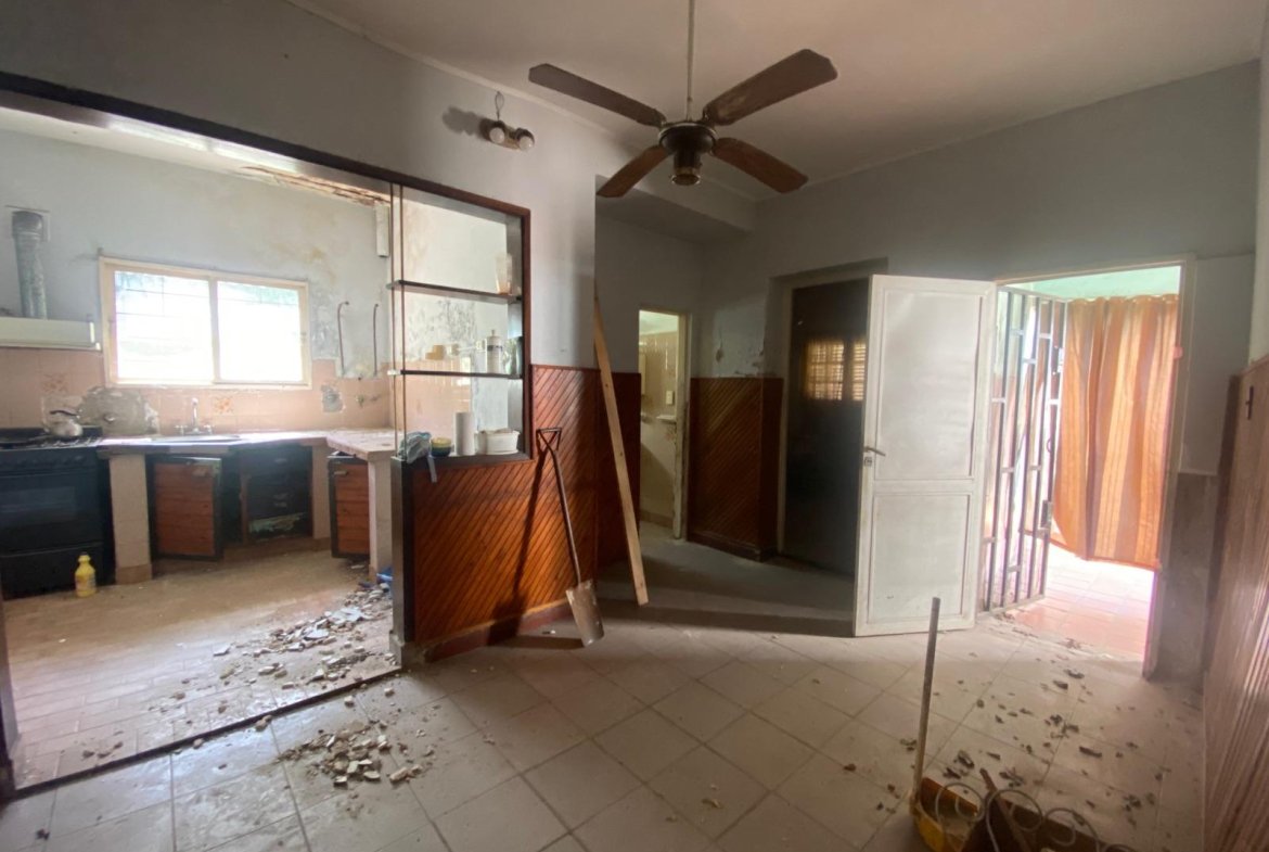Sobre el terreno hay edificada una casa de 100 m2 desarrollada en PB en su estado original y muy deteriorada, a reciclar. Estar de ingreso, living comedor, cocina semi integrada, 2 dormitorios y 1 baño.