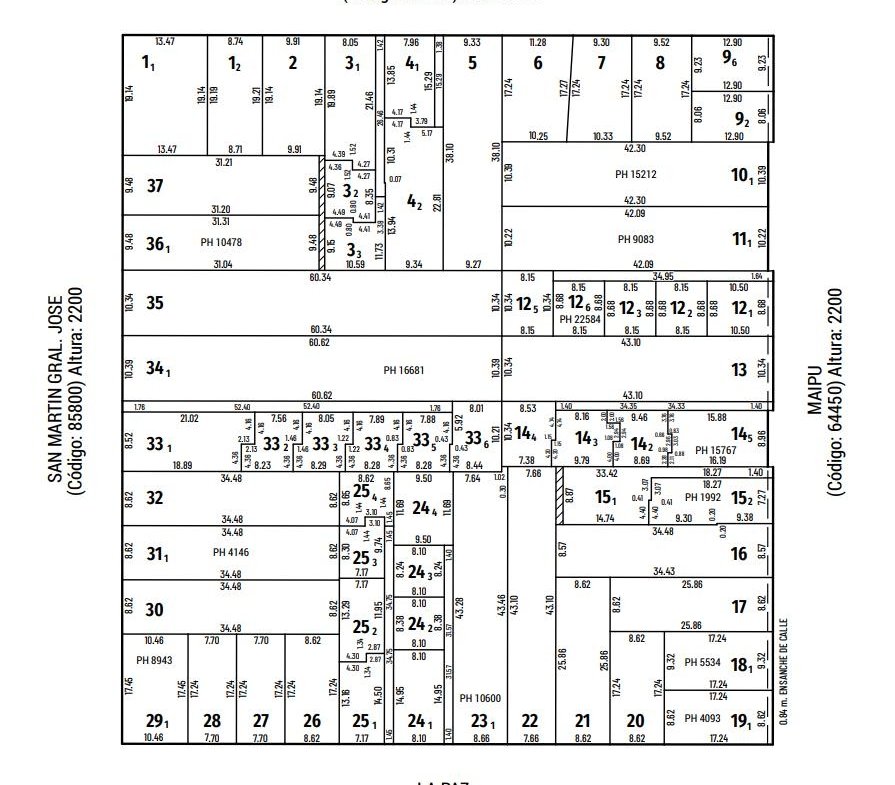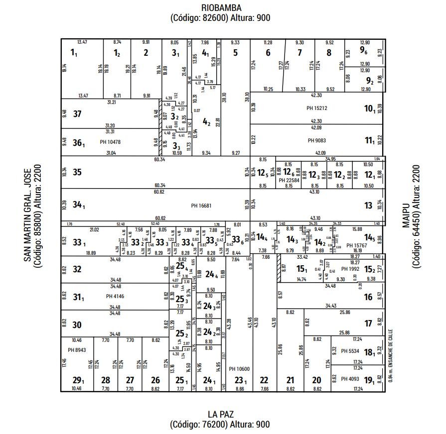 Terreno para constructoras, con orientación al Este. Tiene una superficie de 446 metros cuadrados, producto de sus 10,34 metros de frente por 43,10 metros de fondo. Altura máxima permitida para construir 30,50 metros, con exceptiva.