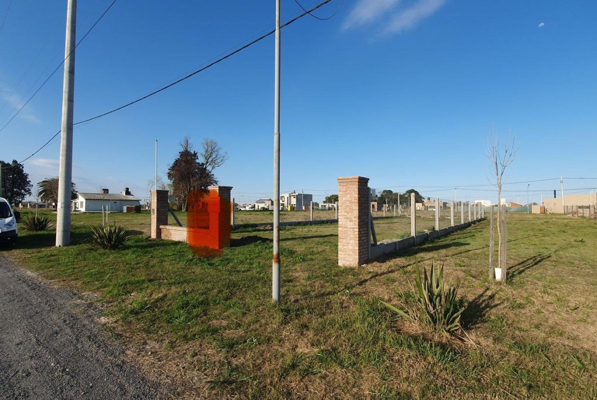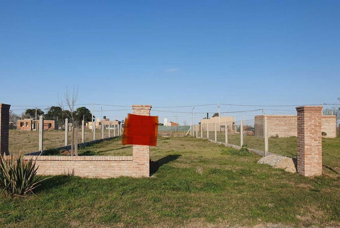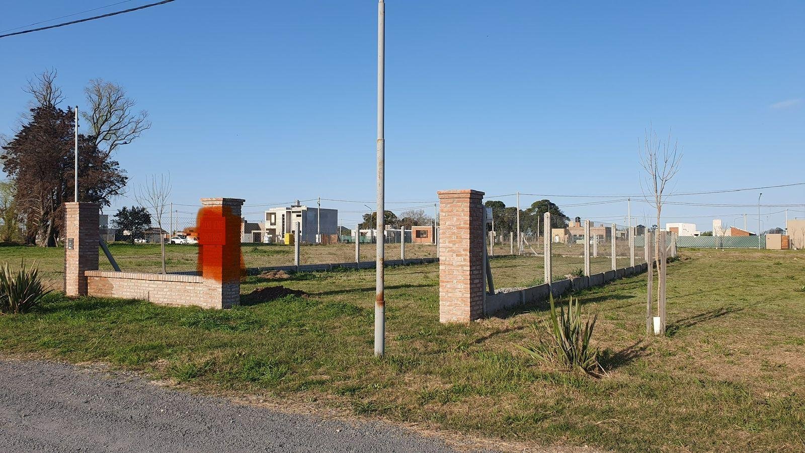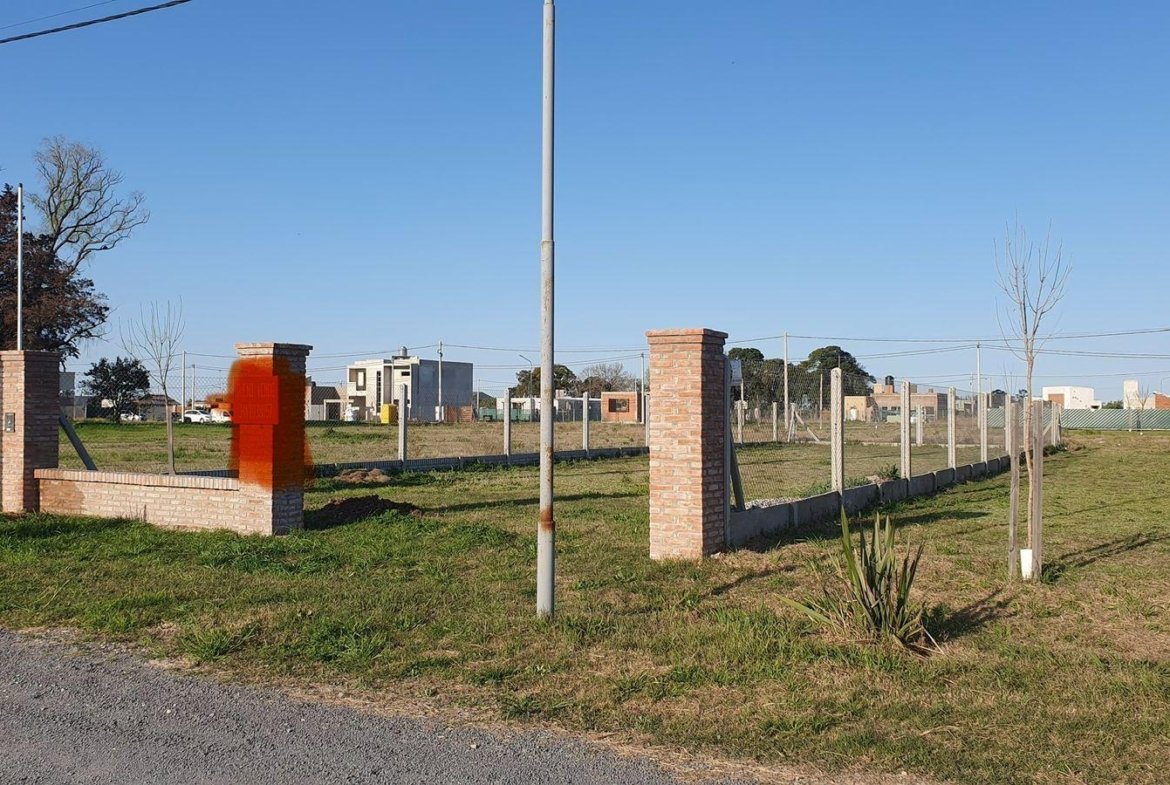 Lote a la venta comercial en Ecovida con mejoras: cerco con alambre y herrajes galvanizados, postes de hormigón y zócalo alto símil ladrillo también de hormigón.