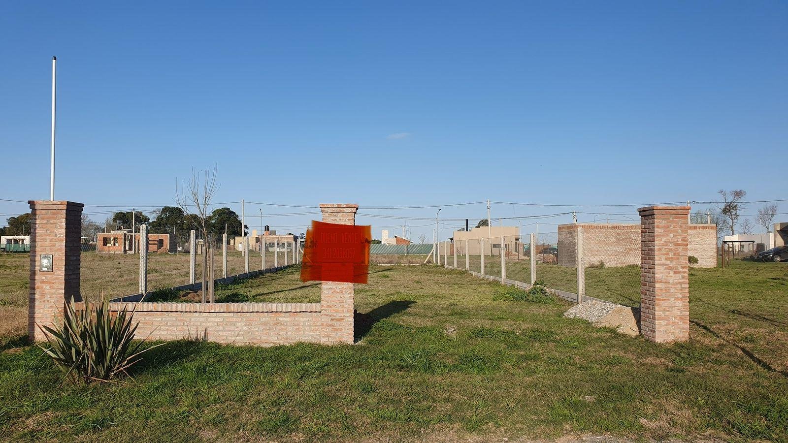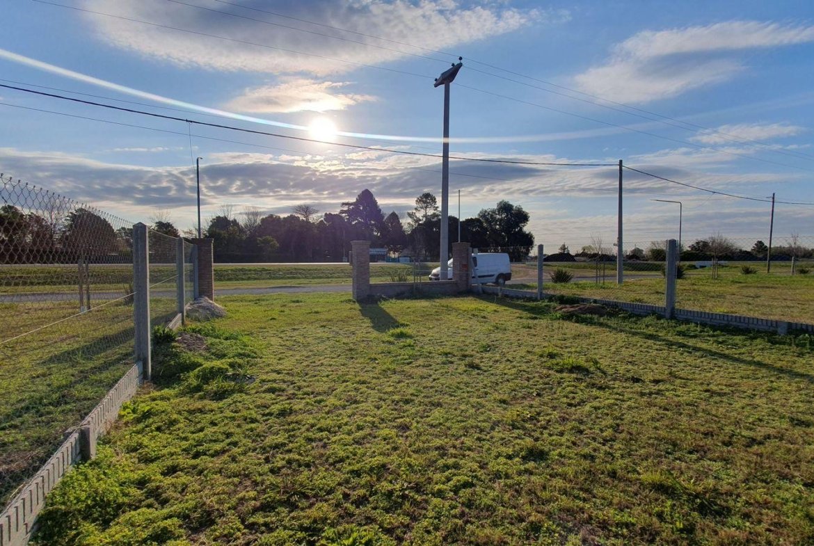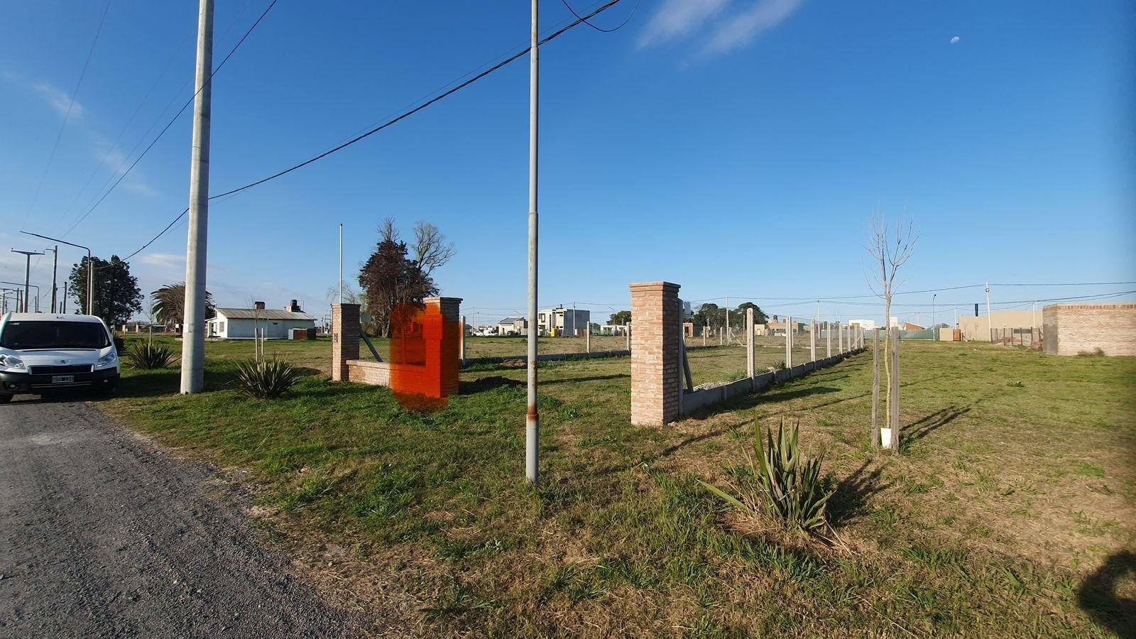 Lote a la venta comercial en Ecovida con mejoras: cerco con alambre y herrajes galvanizados, postes de hormigón y zócalo alto símil ladrillo también de hormigón.