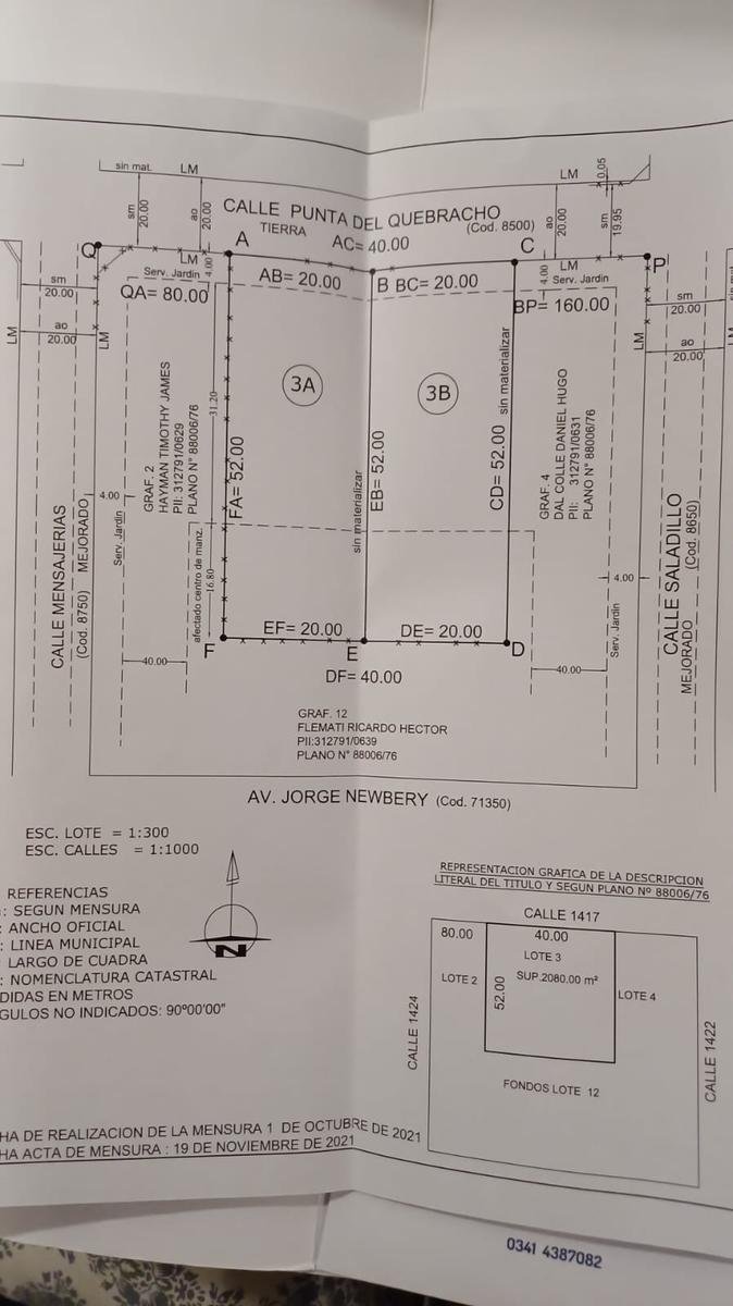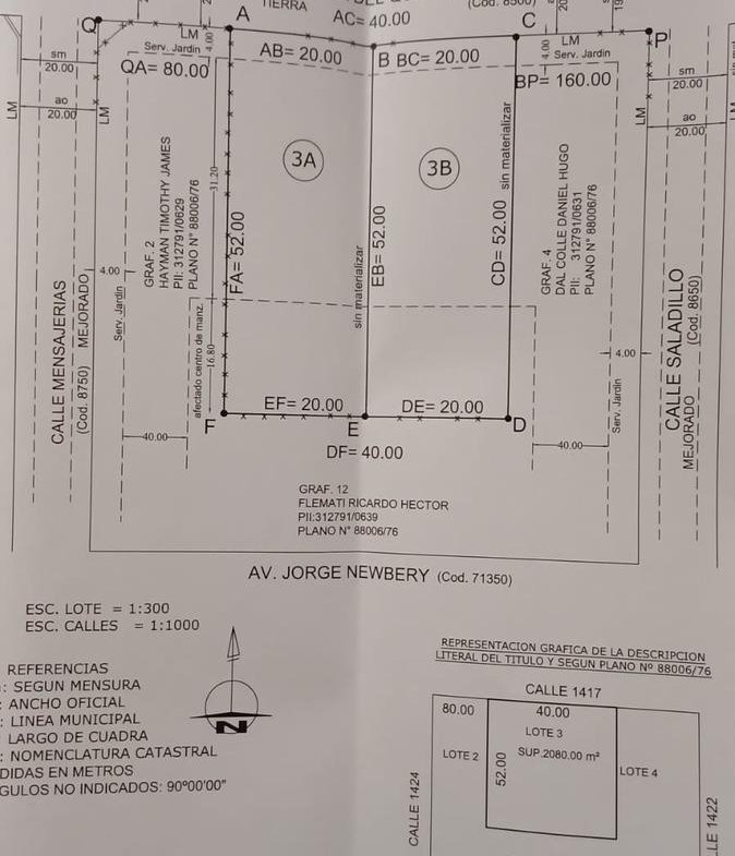 El Lote: se encuentra en Calle Punta del Quebracho al 9200 entre calles Mensajería y Saladillo, a 1500 metros del aeropuerto, y a 4 minutos de Av. Circunvalación. En cuanto a medidas es de 1040 m2 (20 m2 frente x 52 m de fondo). Orientación Norte, disposición frente.