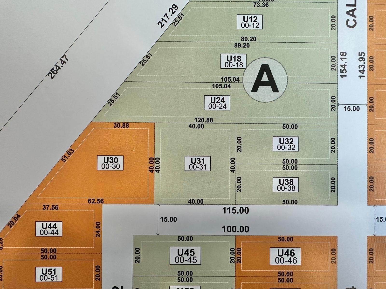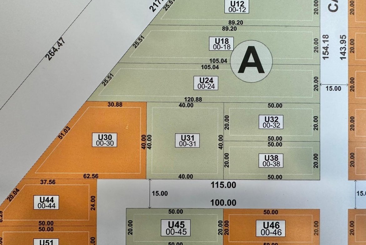 Unidad 31: de 40 m2 de frente x 40 m2 de fondo (1.600 m2 totales), terreno regular con orientación Sur.