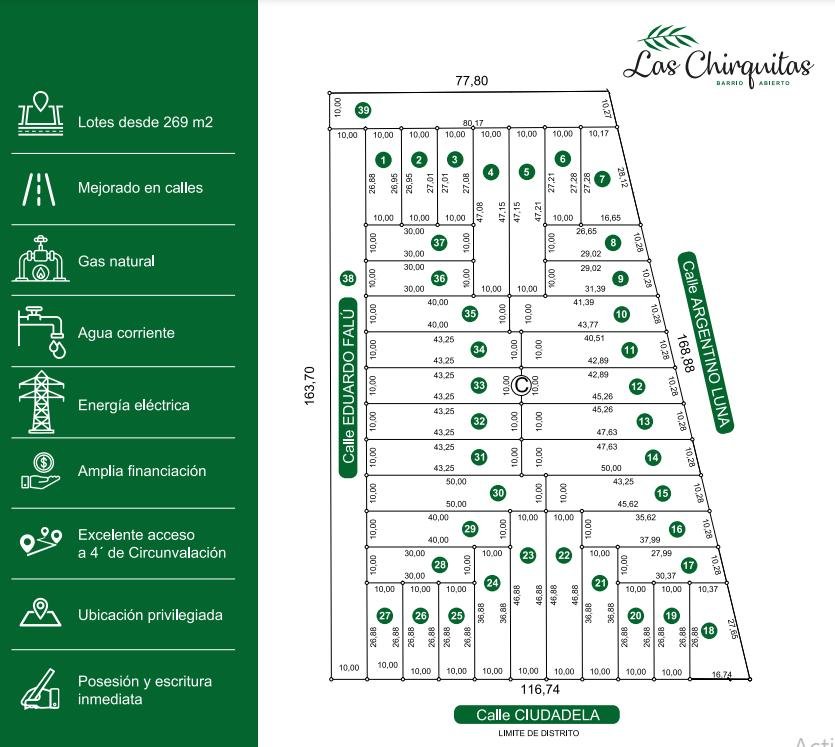 Disponibilidad de lotes desde 269m2 a 500m2.
