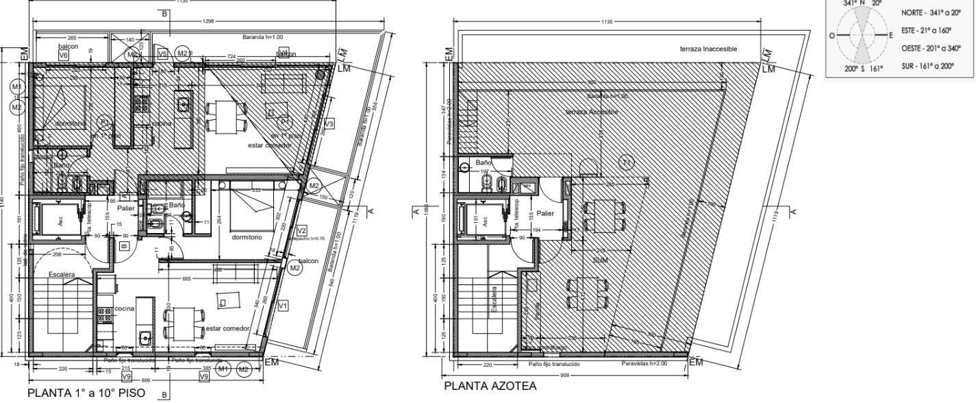 Las unidades se desarrollan en semipisos, con dos departamentos por planta: