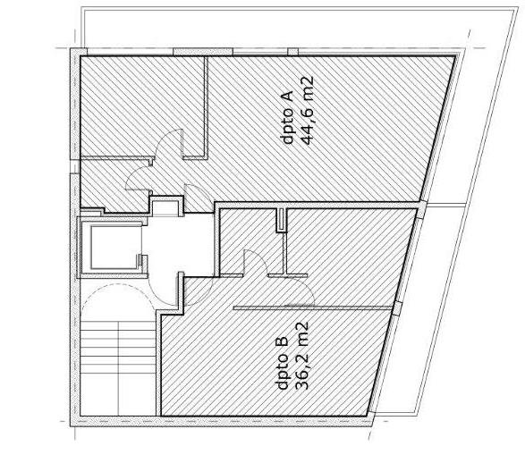 Unidad B (44,6 m² totales) con frente hacia Bv. Avellaneda.