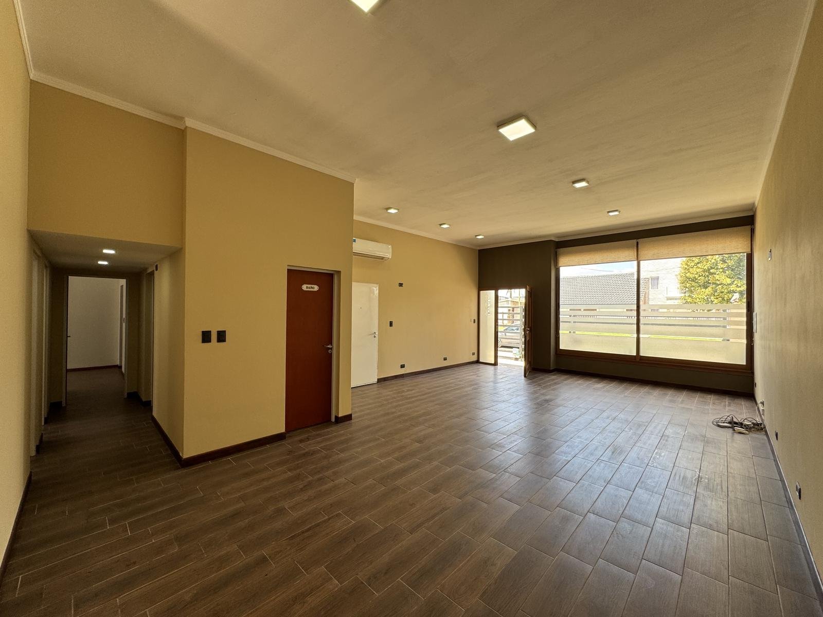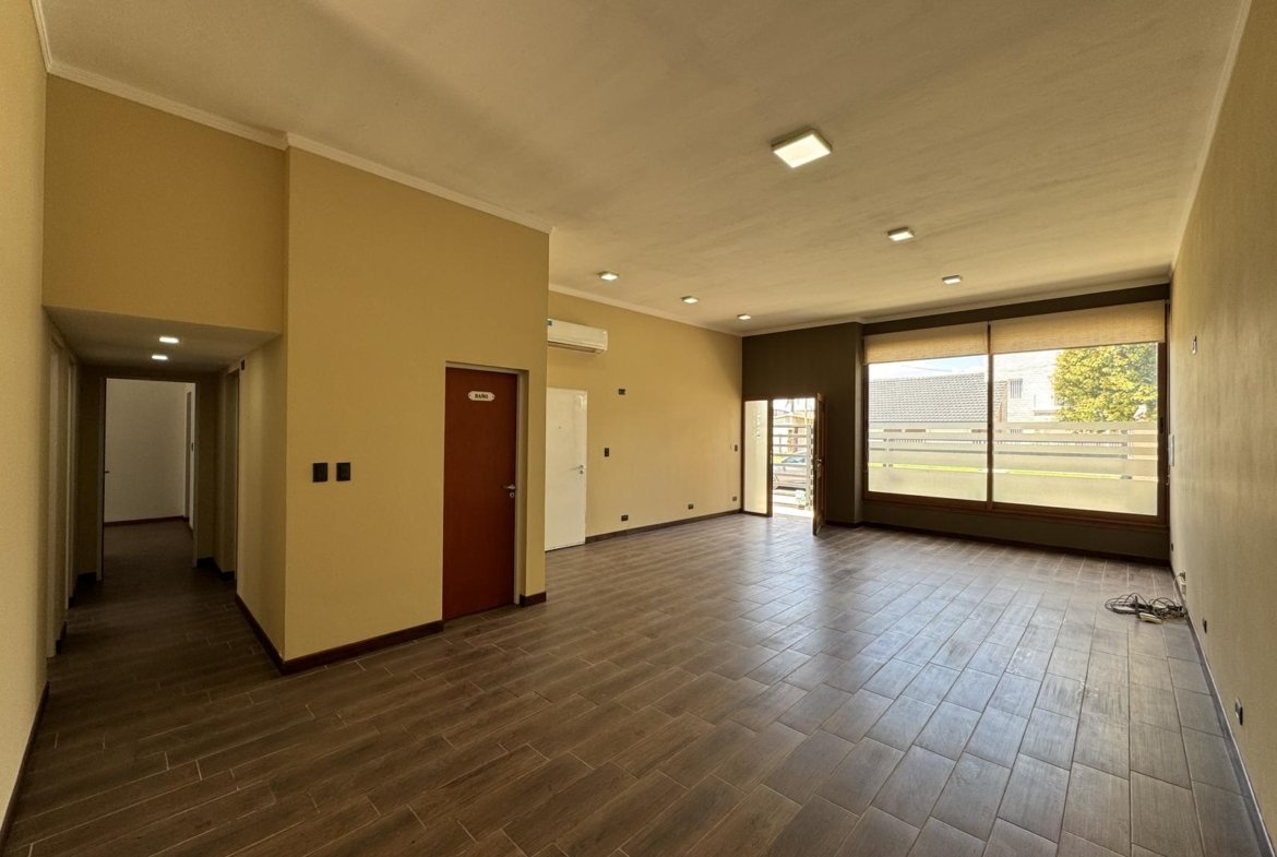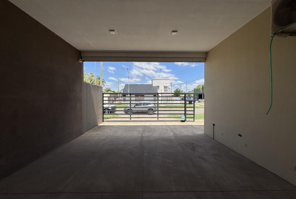 En la fachada veremos un jardín delantero previo a la puerta de ingreso. Al ingresar a la propiedad tendremos el espacio social de living-comedor donde se ubica el baño de servicio o toilette lo que le da una separación al espacio social del intimo. En este ambiente se destaca la altura del techo y la dimensión de las aberturas modena lo que convierte este espacio en un lugar luminoso y de buena ventilación.