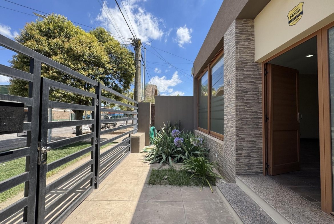 Ubicada estratégicamente en el casco del pueblo de Álvarez vamos a encontrar esta casa con excelentes terminaciones como puertas de cedro, cochera con portón eléctrico, grifería de primera marca Ferrum, aberturas de aluminio y mesada de granito negro Brasil.
