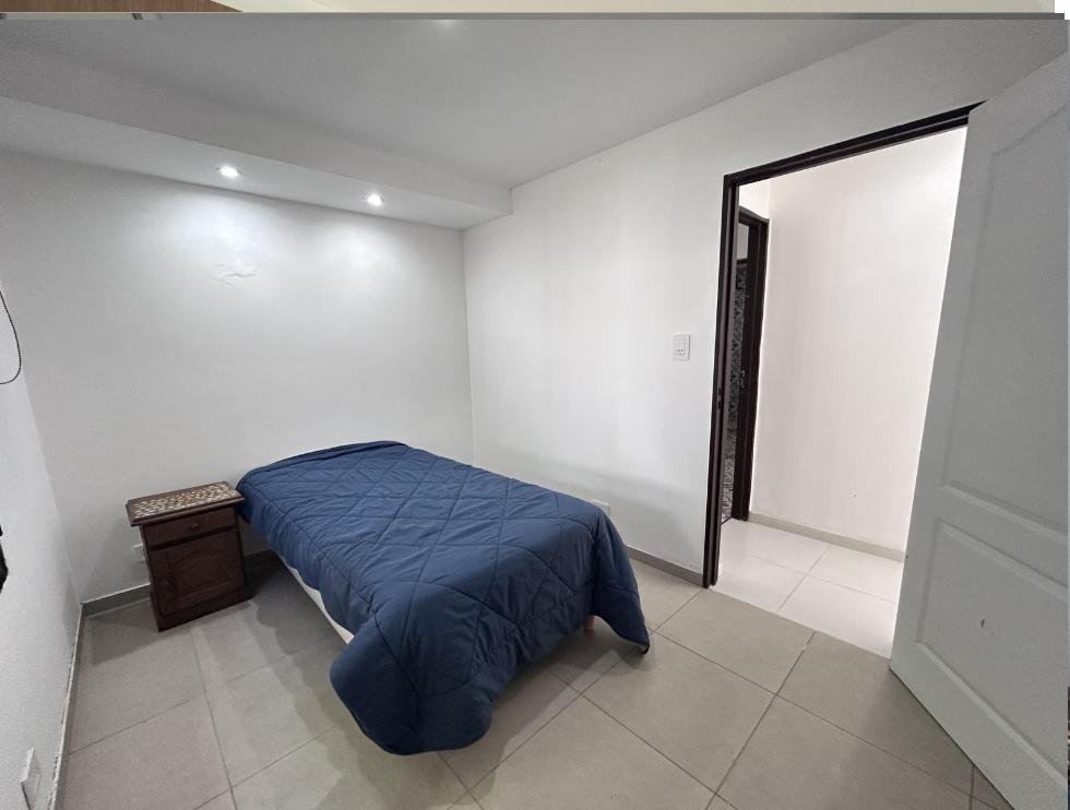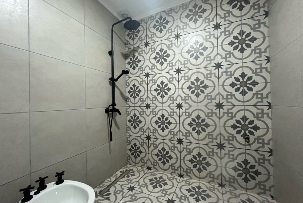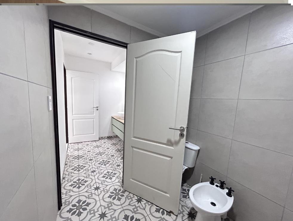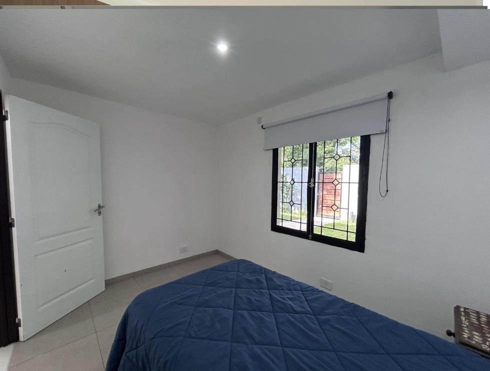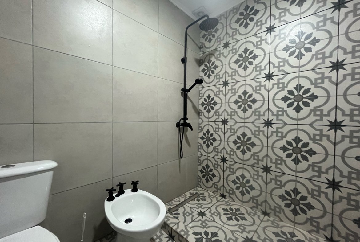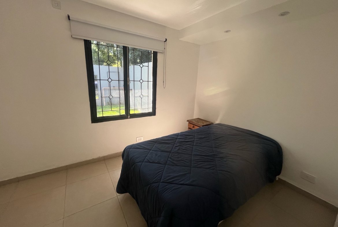 Cuenta con dos dormitorios, uno orientado al frente y otro hacia el jardín, y un baño completo con doble bacha.