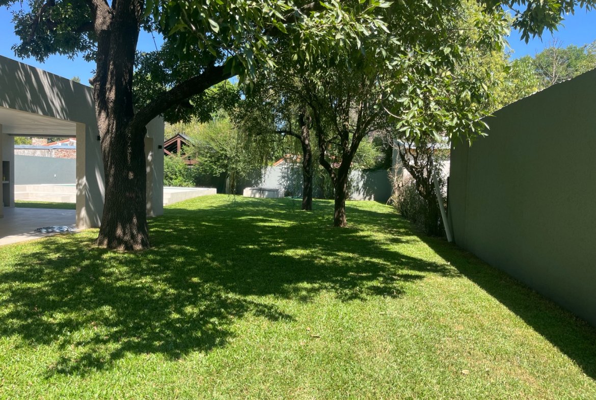 Hermosa casa a estrenar ubicada en una de las zonas más lindas y tranquilas de Funes, sobre un terreno de 600 m², totalmente parquizado y arbolado.