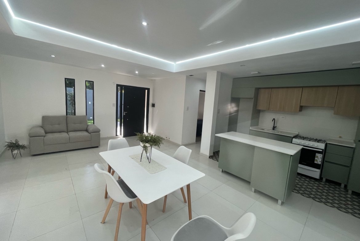 Dispone de un amplio living comedor con cocina semi integrada, con salida directa a la galería y al sector de parrillero, generando una excelente conexión con el exterior.