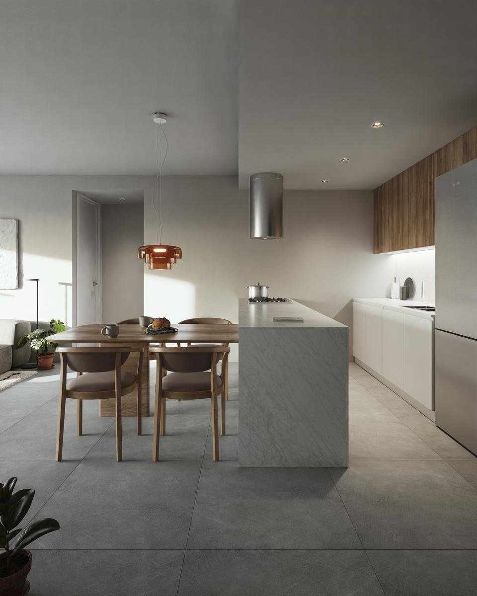 Terminaciones: mobiliario completo de bajo mesadas y alacenas, pileta de acero inoxidable con grifería de primera marca, mesada de silestone o similar, horno y anafe a gas, pisos en porcelanato, baños con loza sanitaria de primeras marcas, griferías, accesorios, espejos colocados y mesada de silestone o similar según unidad y pisos en porcelanatos. Dormitorios con pisos símil madera, placares de piso a techo empotrados con frente e interiores completos en melamina con sistema corredizo. Las unidades contaran con aberturas de aluminio línea A40 o similar con vidrios DVH. Agua caliente mediante caldera dual (incluida) y calefacción por radiadores (no incluye). En departamentos 1 dormitorio, preinstalación de A/A en cada ambiente y en departamentos 2 y 3 dormitorios sistema multisplit.